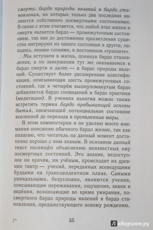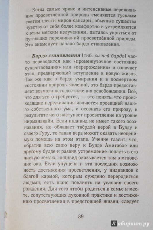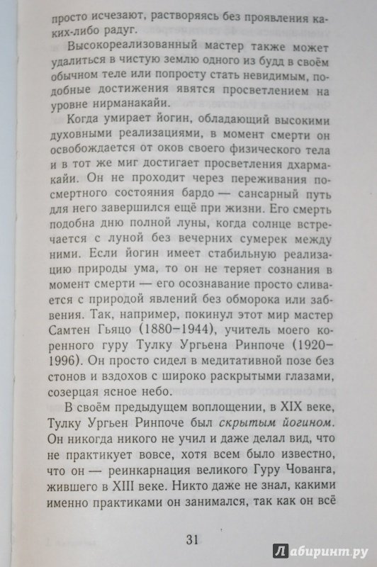 ОписаниеВ этой уникальной книге содержатся практические и теоретические учения тибетского буддизма о смерти, большинство из которых недоступно ни на одном западном языке. Они проливают свет на многие неведомые грани процесса умирания и посмертных переживаний, учат тому, как определять знаки приближающейся смерти, как предотвратить её наступление и продлить жизнь, как воскресить умершего и определить место нового рождения покойного.Составленная на основе текстов Лонгчена Рабджама, Джигме Лингпы, Карма Лингпы и семнадцати тантр дзогчен менгак-дэ, книга представляет интерес для буддистов, тибетологов, буддологов и всех тех, кто интересуется мистическими учениями Востока.В этой уникальной книге содержатся практические и теоретические учения тибетского буддизма о смерти, большинство из которых недоступно ни на одном западном языке. Они проливают свет на многие неведомые грани процесса умирания и посмертных переживаний, учат тому, как определять знаки приближающейся смерти, как предотвратить её наступление и продлить жизнь, как воскресить умершего и определить место нового рождения покойного.Составленная на основе текстов Лонгчена Рабджама, Джигме Лингпы, Карма Лингпы и семнадцати тантр дзогчен менгак-дэ, книга представляет интерес для буддистов, тибетологов, буддологов и всех тех, кто интересуется мистическими учениями Востока.