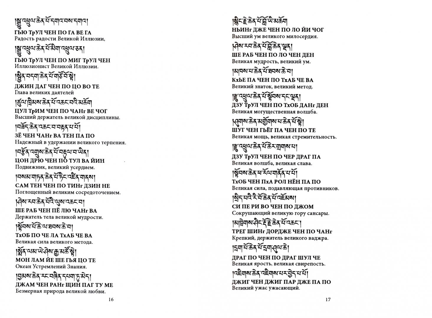 ОписаниеМанджушри (Манджугхоша) - бодхисаттва мудрости, согласно Алмазному Пути или Ваджраяне 13 будда из 1000 будд, которые проявятся в нашем мире, будущий будда. Есть несколько текстов о бодхисаттве Манджушри, которые хотелось, чтобы вы увидели и прочитали. "Арья Манджушри нама самгити" (Перечисление имён Манджушри) - это текст, которым начинается раздел тантры в Ганджуре, и его называют средоточием всех тантрических наставлений. Его ежедневно читали наизусть многие иерархи и практики тибетского буддизма.Манджушри (Манджугхоша) - бодхисаттва мудрости, согласно Алмазному Пути или Ваджраяне 13 будда из 1000 будд, которые проявятся в нашем мире, будущий будда. Есть несколько текстов о бодхисаттве Манджушри, которые хотелось, чтобы вы увидели и прочитали. "Арья Манджушри нама самгити" (Перечисление имён Манджушри) - это текст, которым начинается раздел тантры в Ганджуре, и его называют средоточием всех тантрических наставлений. Его ежедневно читали наизусть многие иерархи и практики тибетского буддизма.