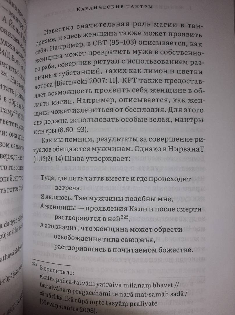Описание"Женщины - это богини", - так гласят тантры. Каково же действительное место женщины в ритуальной практике и жизни тантрического сообщества? Данная книга - попытка ответить на этот вопрос, который в последнее время все более волнует, как академических исследователей, так и духовных искателей. Основываясь на текстах самих тантр и исторических свидетельствах, автор показывает сложность и многообразие ролей женщины в индуистском тантризме, где она может выступать не только непременной участницей самых сокровенных ритуалов, но и наставницей и хранительницей традиции."Женщины - это богини", - так гласят тантры. Каково же действительное место женщины в ритуальной практике и жизни тантрического сообщества? Данная книга - попытка ответить на этот вопрос, который в последнее время все более волнует, как академических исследователей, так и духовных искателей. Основываясь на текстах самих тантр и исторических свидетельствах, автор показывает сложность и многообразие ролей женщины в индуистском тантризме, где она может выступать не только непременной участницей самых сокровенных ритуалов, но и наставницей и хранительницей традиции.