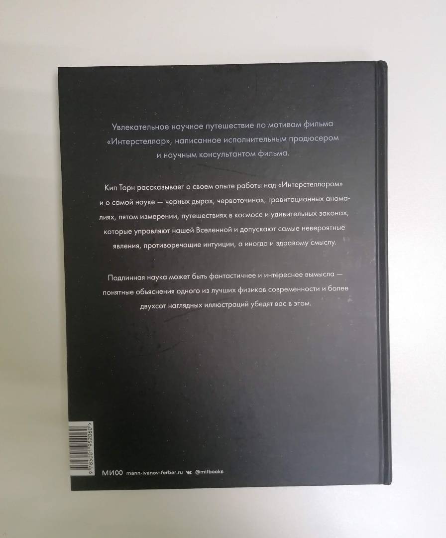 ОписаниеУвлекательное научное путешествие по мотивам фильма "Интерстеллар", написанное исполнительным продюсером и научным консультантом фильма.Кип Торн консультировал известного режиссера Кристофера Нолана по научным аспектам фильма "Интерстеллар". В своей книге он демонстрирует, что невероятные события, показанные в этой картине, и физические эффекты, никогда прежде не отображавшиеся визуально, основаны на подлинной современной науке.Торн рассказывает о своем опыте работы над "Интерстелларом" в качестве научного консультанта и после рассказывает о самой науке - черных дырах, кротовых норах, гравитационных аномалиях, пятом измерении, путешествиях в космосе и удивительных законах, которые управляют нашей Вселенной и допускают самые невероятные явления, противоречащие интуиции, а иногда и здравому смыслу.Подлинная наука может быть фантастичнее и интереснее вымысла - понятные объяснения одного из лучших физиков современности и 200 наглядных иллюстраций убедят вас в этом.Для кого эта книгаДля всех, кому интересны физика, космос, естественные науки и то, как устроена наша Вселенная. Для тех, у кого остались вопросы после просмотра фильма "Интерстеллар".3-е издание.СвернутьУвлекательное научное путешествие по мотивам фильма "Интерстеллар", написанное исполнительным продюсером и научным консультантом фильма.Кип Торн консультировал известного режиссера Кристофера Нолана по научным аспектам фильма "Интерстеллар". В своей книге он демонстрирует, что невероятные события, показанные в этой картине, и физические эффекты, никогда прежде не отображавшиеся визуально, основаны на подлинной современной науке.Торн рассказывает о своем опыте работы над "Интерстелларом" в качестве научного консультанта и после рассказывает о самой науке - черных дырах, кротовых норах, гравитационных аномалиях, пятом измерении, путешествиях в космосе и удивительных законах, которые управляют нашей Вселенной и допускают самые невероятные явления, противоречащие интуиции, а иногда и здравому смыслу.Подлинная наука может быть фантастичнее и интереснее вымысла - понятные объяснения одного из лучших физиков современности и 200 наглядных иллюстраций убедят вас в этом.Для кого эта книгаДля всех, кому интересны физика, космос, естественные науки и то, как устроена наша Вселенная. Для тех, у кого остались вопросы после просмотра фильма "Интерстеллар".3-е издание.СвернутьСвернуть