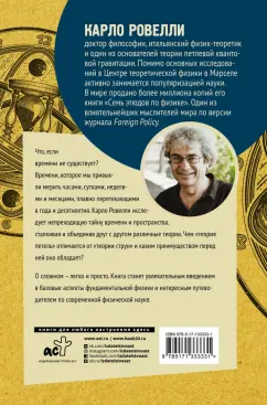 ОписаниеКарло Ровелли – доктор философии, итальянский физик-теоретик и один из основателей теории петлевой квантовой гравитации. Помимо основных исследований в Центре теоретической физики в Марселе активно занимается популяризацией науки. В мире продано более миллиона копий его книги «Семь этюдов по физике». Один из влиятельнейших мыслителей мира по версии журнала Foreign Policy.Что, если времени не существует? Времени, которое мы привыкли мерить часами, сутками, неделями и месяцами, плавно перетекающими в года и десятилетия. Карло Ровелли исследует непреходящую тайну времени и пространства, сталкивая и объединяя друг с другом различные теории. Чем «теория петель» отличается от «теории струн» и каким преимуществом перед ней она обладает? О сложном – легко и просто. Книга станет увлекательным введением в базовые аспекты фундаментальной физики и интересным путеводителем по современной физической науке.Карло Ровелли – доктор философии, итальянский физик-теоретик и один из основателей теории петлевой квантовой гравитации. Помимо основных исследований в Центре теоретической физики в Марселе активно занимается популяризацией науки. В мире продано более миллиона копий его книги «Семь этюдов по физике». Один из влиятельнейших мыслителей мира по версии журнала Foreign Policy.Что, если времени не существует? Времени, которое мы привыкли мерить часами, сутками, неделями и месяцами, плавно перетекающими в года и десятилетия. Карло Ровелли исследует непреходящую тайну времени и пространства, сталкивая и объединяя друг с другом различные теории. Чем «теория петель» отличается от «теории струн» и каким преимуществом перед ней она обладает? О сложном – легко и просто. Книга станет увлекательным введением в базовые аспекты фундаментальной физики и интересным путеводителем по современной физической науке.