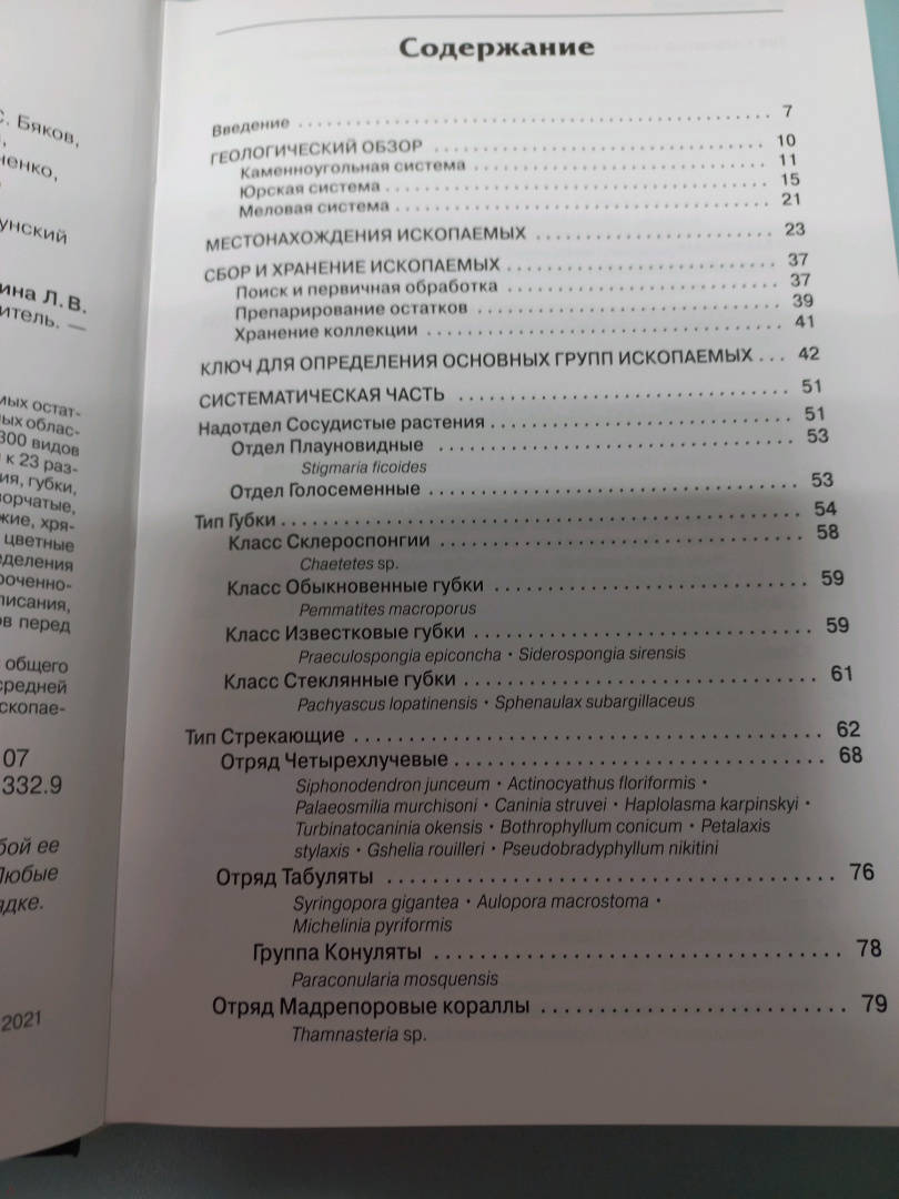 ОписаниеКнига предназначена для определения докайнозойских ископаемых остатков растений и животных юга Москвы, Московской и ряда сопредельных областей - Калужской, Тульской, Рязанской. Приведены описания около 300 видов наиболее обычных и характерных ископаемых региона, относящихся к 23 различным классам. В атласе рассмотрены споровые и семенные растения губки кишечнополостные, многощетинковые черви, членистоногие, двустворчатые, брюхоногие и головоногие моллюски, мшанки и брахиоподы, иглокожие хрящевые рыбы и морские рептилии. Для каждого таксона приведены цветные фотографии с нескольких ракурсов, достаточных для уверенного определения объекта. Кроме того, представлена информация по возрастной приуроченности и частоте встречаемости, а также подробные морфологические описания сравнения со сходными формами. Для диагностики крупных таксонов перед описательной частью дан определительный ключ.Атлас-определитель рассчитан на студентов и преподавателей вузов общего геологического профиля, музейных работников, учителей биологии средней общеобразовательной школы, всех людей, увлекающихся сбором ископаемых, а также на учащихся школьных кружков.СвернутьКнига предназначена для определения докайнозойских ископаемых остатков растений и животных юга Москвы, Московской и ряда сопредельных областей - Калужской, Тульской, Рязанской. Приведены описания около 300 видов наиболее обычных и характерных ископаемых региона, относящихся к 23 различным классам. В атласе рассмотрены споровые и семенные растения губки кишечнополостные, многощетинковые черви, членистоногие, двустворчатые, брюхоногие и головоногие моллюски, мшанки и брахиоподы, иглокожие хрящевые рыбы и морские рептилии. Для каждого таксона приведены цветные фотографии с нескольких ракурсов, достаточных для уверенного определения объекта. Кроме того, представлена информация по возрастной приуроченности и частоте встречаемости, а также подробные морфологические описания сравнения со сходными формами. Для диагностики крупных таксонов перед описательной частью дан определительный ключ.Атлас-определитель рассчитан на студентов и преподавателей вузов общего геологического профиля, музейных работников, учителей биологии средней общеобразовательной школы, всех людей, увлекающихся сбором ископаемых, а также на учащихся школьных кружков.СвернутьСвернуть