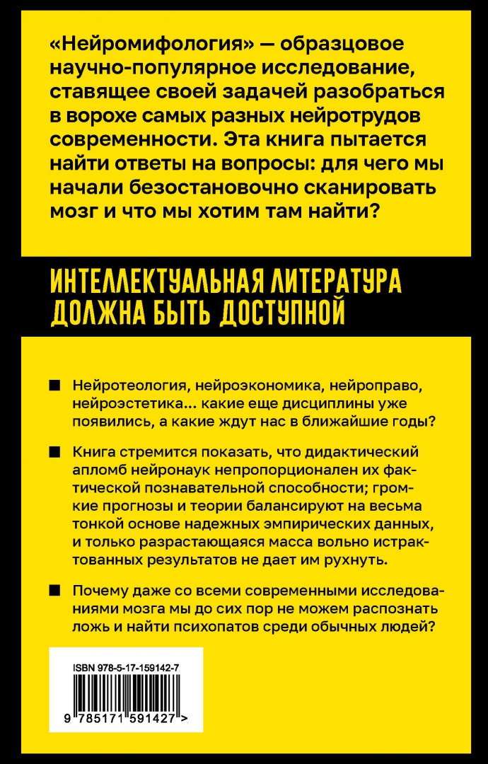 • Почему даже со всеми современными исследованиями мозга мы до сих пор не можем распознать ложь и найти психопатов среди обычных людей?«Нейромифология» — образцовое научно-популярное исследование, ставящее своей задачей разобраться в ворохе самых разных нейротрудов современности. Эта книга пытается найти ответ на вопрос: для чего мы начали безостановочно сканировать мозг и что мы хотим там найти?