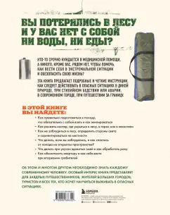 ОписаниеВы потерялись в лесу, и у вас нет с собой ни воды, ни еды? Кто-то срочно нуждается в медицинской помощи, а никого кроме вас рядом нет, чтобы помочь? Как вести себя в экстремальной ситуации и обезопасить свою жизнь? Эта книга предлагает подробные и четкие инструкции, как следует действовать в опасных ситуациях в дикой природе, при стихийном бедствии или аварии, в современном городе, при путешествии за границу. Порядок действий в том или ином случае проиллюстрирован понятными картинками, что сделает ваше чтение не только полезным, но и увлекательным.В этой книге вы найдете:- Как правильно подготовиться к походу, что обязательно с собой взять и как экипироваться?- Как разжечь костер, где укрыться в лесу, в горах или в лесостепи?- Как не заблудится в лесу, определить стороны света и сориентироваться на местности?- Что делать, если вы заблудились, и как спастись от холода на открытом пространстве?- Что делать при укусах ядовитых змей и как обработать рану?- Как обезопасить квартиру и как себя вести при вторжении грабителей?Об этом и многом другом необходимо знать каждому современному человеку. Особый интерес книга представит для заядлых путешественников, жителей больших городов, туристов и всех тех, кто хочет научиться выжить в опасных ситуациях.СвернутьВы потерялись в лесу, и у вас нет с собой ни воды, ни еды? Кто-то срочно нуждается в медицинской помощи, а никого кроме вас рядом нет, чтобы помочь? Как вести себя в экстремальной ситуации и обезопасить свою жизнь? Эта книга предлагает подробные и четкие инструкции, как следует действовать в опасных ситуациях в дикой природе, при стихийном бедствии или аварии, в современном городе, при путешествии за границу. Порядок действий в том или ином случае проиллюстрирован понятными картинками, что сделает ваше чтение не только полезным, но и увлекательным.В этой книге вы найдете:- Как правильно подготовиться к походу, что обязательно с собой взять и как экипироваться?- Как разжечь костер, где укрыться в лесу, в горах или в лесостепи?- Как не заблудится в лесу, определить стороны света и сориентироваться на местности?- Что делать, если вы заблудились, и как спастись от холода на открытом пространстве?- Что делать при укусах ядовитых змей и как обработать рану?- Как обезопасить квартиру и как себя вести при вторжении грабителей?Об этом и многом другом необходимо знать каждому современному человеку. Особый интерес книга представит для заядлых путешественников, жителей больших городов, туристов и всех тех, кто хочет научиться выжить в опасных ситуациях.СвернутьСвернуть