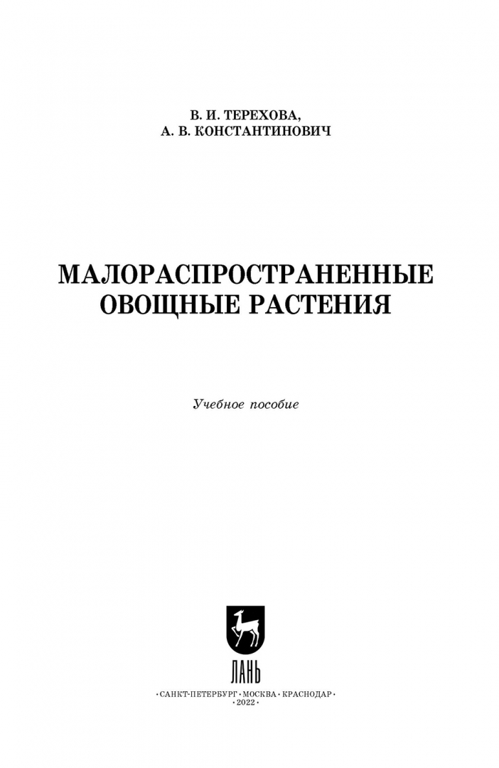 Терехова, Константинович: Малораспространенные овощные растения. Учебное пособие для СПО