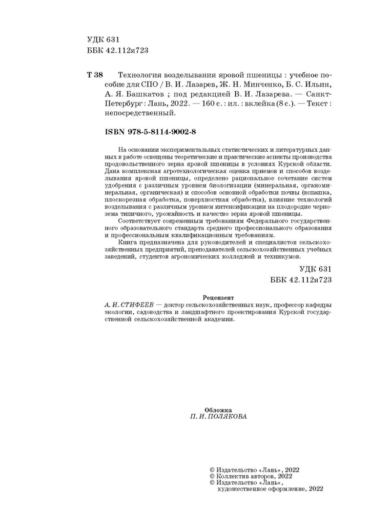 Лазарев, Минченко, Ильин: Технология возделывания яровой пшеницы. СПО