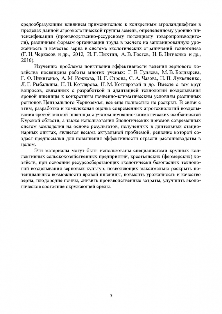ОписаниеНа основании экспериментальных статистических и литературных данных в работе освещены теоретические и практические аспекты производства продовольственного зерна яровой пшеницы в условиях Курской области. Дана комплексная агротехнологическая оценка приемов и способов возделывания яровой пшеницы, определено рациональное сочетание систем удобрения с различным уровнем биологизации (минеральная, органоминеральная, органическая) и способов основной обработки почвы (вспашка, плоскорезная обработка, поверхностная обработка), влияние технологий возделывания с различным уровнем интенсификации на плодородие чернозема типичного, урожайность и качество зерна яровой пшеницы.Соответствует современным требованиям Федерального государственного образовательного стандарта среднего профессионального образования и профессиональным квалификационным требованиям.Книга предназначена для руководителей и специалистов сельскохозяйственных предприятий, преподавателей сельскохозяйственных учебных заведений, студентов агрономических колледжей и техникумов.СвернутьНа основании экспериментальных статистических и литературных данных в работе освещены теоретические и практические аспекты производства продовольственного зерна яровой пшеницы в условиях Курской области. Дана комплексная агротехнологическая оценка приемов и способов возделывания яровой пшеницы, определено рациональное сочетание систем удобрения с различным уровнем биологизации (минеральная, органоминеральная, органическая) и способов основной обработки почвы (вспашка, плоскорезная обработка, поверхностная обработка), влияние технологий возделывания с различным уровнем интенсификации на плодородие чернозема типичного, урожайность и качество зерна яровой пшеницы.Соответствует современным требованиям Федерального государственного образовательного стандарта среднего профессионального образования и профессиональным квалификационным требованиям.Книга предназначена для руководителей и специалистов сельскохозяйственных предприятий, преподавателей сельскохозяйственных учебных заведений, студентов агрономических колледжей и техникумов.СвернутьСвернуть