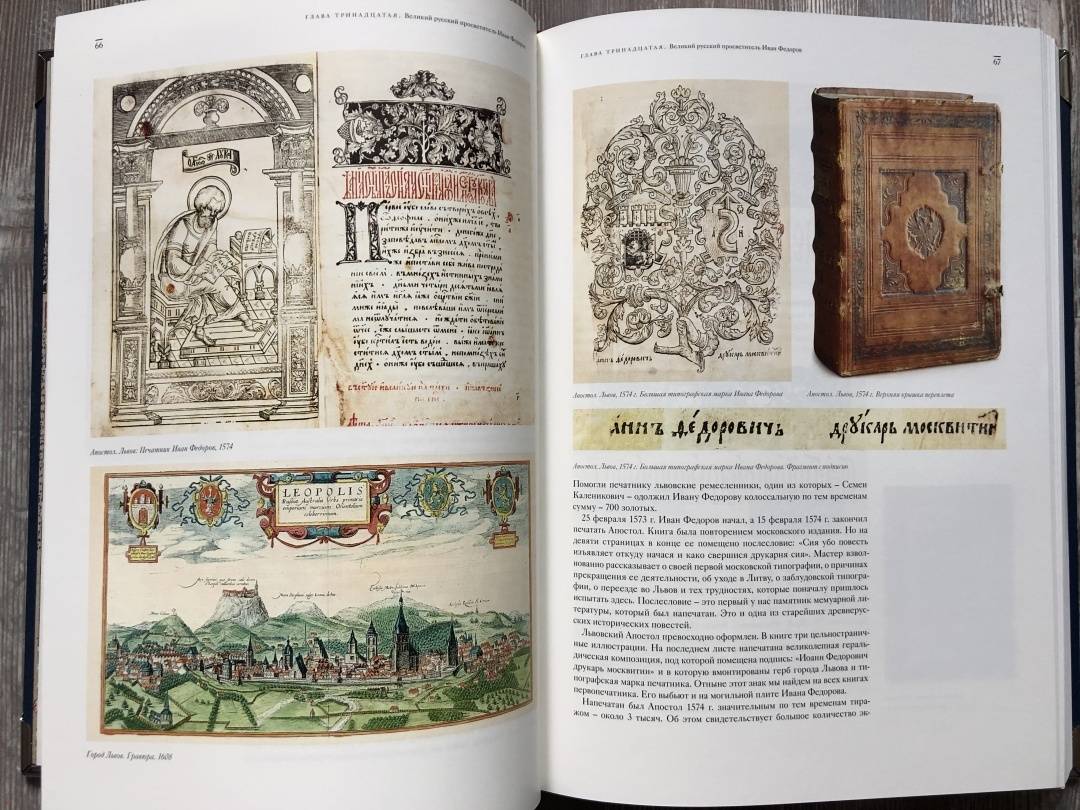 ОписаниеСовместный проект Российской государственной библиотеки и издательства "СНЕГ". В издании собраны фундаментальные исследования доктора исторических наук, учёного-книговеда, главного научного сотрудника Российской книжной палаты Евгения Львовича Немировского. Отдельной брошюрой представлен справочный материал.С целью реализации проекта проведена работа по созданию порядка 2 500 фотографий редких книг из мирового библиотечного фонда, позволяющих увидеть настоящие раритеты. Уникальное издание включает множество иллюстраций, гравюр и картин великих мастеров.Фундаментальный труд о главных хранителях информации, носителях основ мировых религий, источнике просвещения и образования, вместилище знаний - книгах. Изложена история возникновения письменности, начиная с этапа создания письменных текстов у разных народов. Подробно рассматривается Книга книг - Библия, играющая беспрецедентную роль в мировой культуре. Изучены античные сочинения, средневековые кодексы, рукописные западноевропейские и славянские книги. Большое внимание уделено голландским печатникам Эльзевирам, книгам, выпущенным в эпоху Просвещения и литературным произведениям, включенным в золотой фонд мировой культуры.СвернутьСовместный проект Российской государственной библиотеки и издательства "СНЕГ". В издании собраны фундаментальные исследования доктора исторических наук, учёного-книговеда, главного научного сотрудника Российской книжной палаты Евгения Львовича Немировского. Отдельной брошюрой представлен справочный материал.С целью реализации проекта проведена работа по созданию порядка 2 500 фотографий редких книг из мирового библиотечного фонда, позволяющих увидеть настоящие раритеты. Уникальное издание включает множество иллюстраций, гравюр и картин великих мастеров.Фундаментальный труд о главных хранителях информации, носителях основ мировых религий, источнике просвещения и образования, вместилище знаний - книгах. Изложена история возникновения письменности, начиная с этапа создания письменных текстов у разных народов. Подробно рассматривается Книга книг - Библия, играющая беспрецедентную роль в мировой культуре. Изучены античные сочинения, средневековые кодексы, рукописные западноевропейские и славянские книги. Большое внимание уделено голландским печатникам Эльзевирам, книгам, выпущенным в эпоху Просвещения и литературным произведениям, включенным в золотой фонд мировой культуры.СвернутьСвернуть
