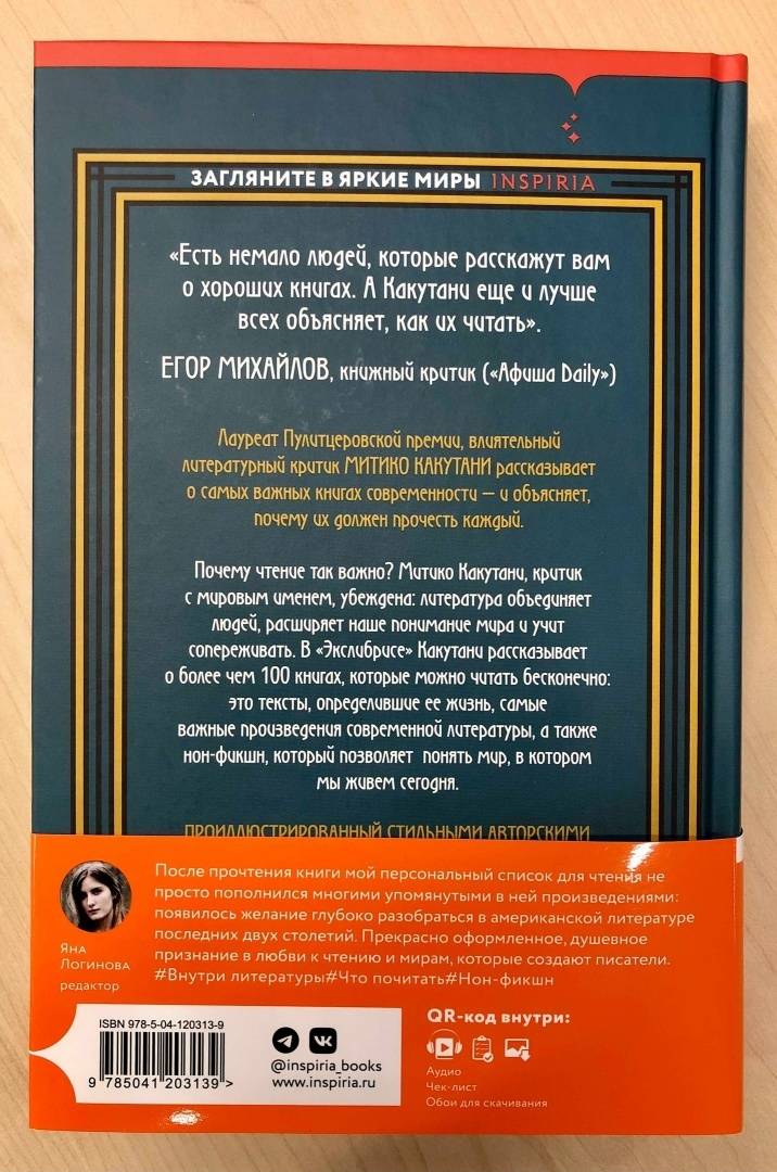ОписаниеЛауреат Пулитцеровской премии, влиятельный литературный обозреватель The New York Times Митико Какутани в ярко иллюстрированном сборнике рассказывает о самых важных книгах современности — и объясняет, почему их должен прочесть каждый. Почему книги так важны? Митико Какутани, критик с мировым именем, убеждена: литература способна объединять людей, невзирая на культурные различия, государственные границы и исторические эпохи. Чтение позволяет понять жизнь других, не похожих на нас людей и разделить пережитые ими радости и потери. В «Экслибрисе» Какутани рассказывает о более чем 100 книгах: это и тексты, определившие ее жизнь, и важнейшие произведения современной литературы, и книги, которые позволяют лучше понять мир, в котором мы живем сегодня. В сборнике эссе читатели откроют для себя книги актуальных писателей, вспомнят классику, которую стоит перечитать, а также познакомятся с самыми значимыми научно-популярными трудами, биографиями и мемуарами. Дон Делилло, Элена Ферранте, Уильям Гибсон, Иэн Макьюэн, Владимир Набоков и Хорхе Луис Борхес, научпоп о медицине, политике и цифровой революции, детские и юношеские книги — лишь малая часть того, что содержится в книге. Проиллюстрированная стильными авторскими рисунками, напоминающими старинные экслибрисы, книга поможет сориентироваться в безграничном мире литературы и поможет лучше понимать происходящие в ней процессы. «Экслибрис» — это настоящий подарок для всех, кто любит читать. «Митико Какутани — это мой главный внутренний собеседник: вечно с ней про себя спорю, почти никогда не соглашаюсь, но бесконечно восхищаюсь и чту». — Галина Юзефович, литературный критик «Книга для настоящих библиофилов». — Опра Уинфри «Одухотворенная, сердечная дань уважения книгам и чтению». — Kirkus ReviewСвернутьЛауреат Пулитцеровской премии, влиятельный литературный обозреватель The New York Times Митико Какутани в ярко иллюстрированном сборнике рассказывает о самых важных книгах современности — и объясняет, почему их должен прочесть каждый. Почему книги так важны? Митико Какутани, критик с мировым именем, убеждена: литература способна объединять людей, невзирая на культурные различия, государственные границы и исторические эпохи. Чтение позволяет понять жизнь других, не похожих на нас людей и разделить пережитые ими радости и потери. В «Экслибрисе» Какутани рассказывает о более чем 100 книгах: это и тексты, определившие ее жизнь, и важнейшие произведения современной литературы, и книги, которые позволяют лучше понять мир, в котором мы живем сегодня. В сборнике эссе читатели откроют для себя книги актуальных писателей, вспомнят классику, которую стоит перечитать, а также познакомятся с самыми значимыми научно-популярными трудами, биографиями и мемуарами. Дон Делилло, Элена Ферранте, Уильям Гибсон, Иэн Макьюэн, Владимир Набоков и Хорхе Луис Борхес, научпоп о медицине, политике и цифровой революции, детские и юношеские книги — лишь малая часть того, что содержится в книге. Проиллюстрированная стильными авторскими рисунками, напоминающими старинные экслибрисы, книга поможет сориентироваться в безграничном мире литературы и поможет лучше понимать происходящие в ней процессы. «Экслибрис» — это настоящий подарок для всех, кто любит читать. «Митико Какутани — это мой главный внутренний собеседн