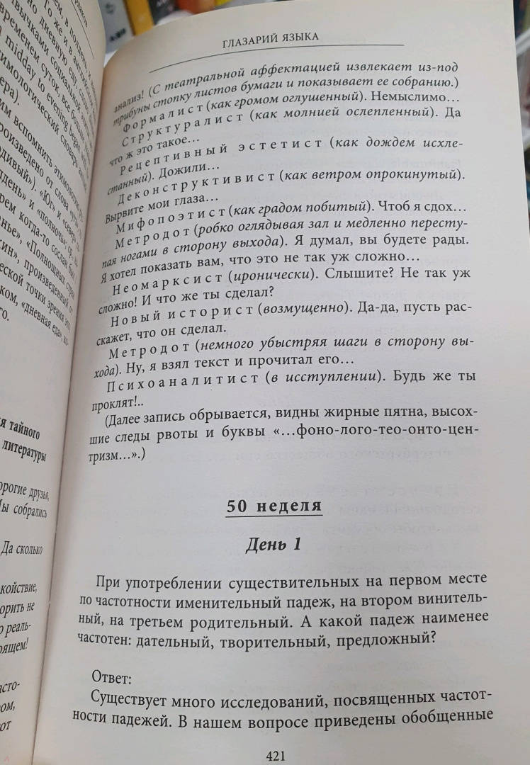 ОписаниеЕсть много замечательных книг о русском языке, выстроенных традиционно - в виде связного изложения, последовательно раскрывающего те или иные темы. В данном случае авторы предлагают калейдоскоп небольших текстов, сменяющих друг друга без очевидной тематической связи. Эти тексты, однако, объединены идеей своеобразного филологического календаря, где на каждый день года приходится заметка на определенную филологическую тему. Каждый новый день - это новый текст, новый взгляд на язык, новые вопросы о нем, сатирическая зарисовка, аналитическое эссе и др.Темы предлагаемых очерков и заметок разнообразны: история и этимология слов и выражений, вопросы нормы литературного языка и ее нарушения, борьба старого и нового в языке, значение и употребление русских диалектных слов, трудные случаи грамматики и орфографии, речь современного общества, особенности языка русских писателей и русского литературного развития, жизнь и деятельность ученых и т. д.Есть много замечательных книг о русском языке, выстроенных традиционно - в виде связного изложения, последовательно раскрывающего те или иные темы. В данном случае авторы предлагают калейдоскоп небольших текстов, сменяющих друг друга без очевидной тематической связи. Эти тексты, однако, объединены идеей своеобразного филологического календаря, где на каждый день года приходится заметка на определенную филологическую тему. Каждый новый день - это новый текст, новый взгляд на язык, новые вопросы о нем, сатирическая зарисовка, аналитическое эссе и др.Темы предлагаемых очерков и заметок разнообразны: история и этимология слов и выражений, вопросы нормы литературного языка и ее нарушения, борьба старого и нового в языке, значение и употребление русских диалектных слов, трудные случаи грамматики и орфографии, речь современного общества, особенности языка русских писателей и русского литературного развития, жизнь и деятельность ученых и т. д.