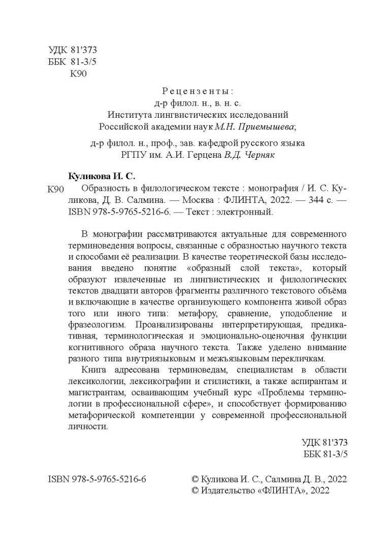 Куликова, Салмина: Образность в филологическом тексте. Монография
