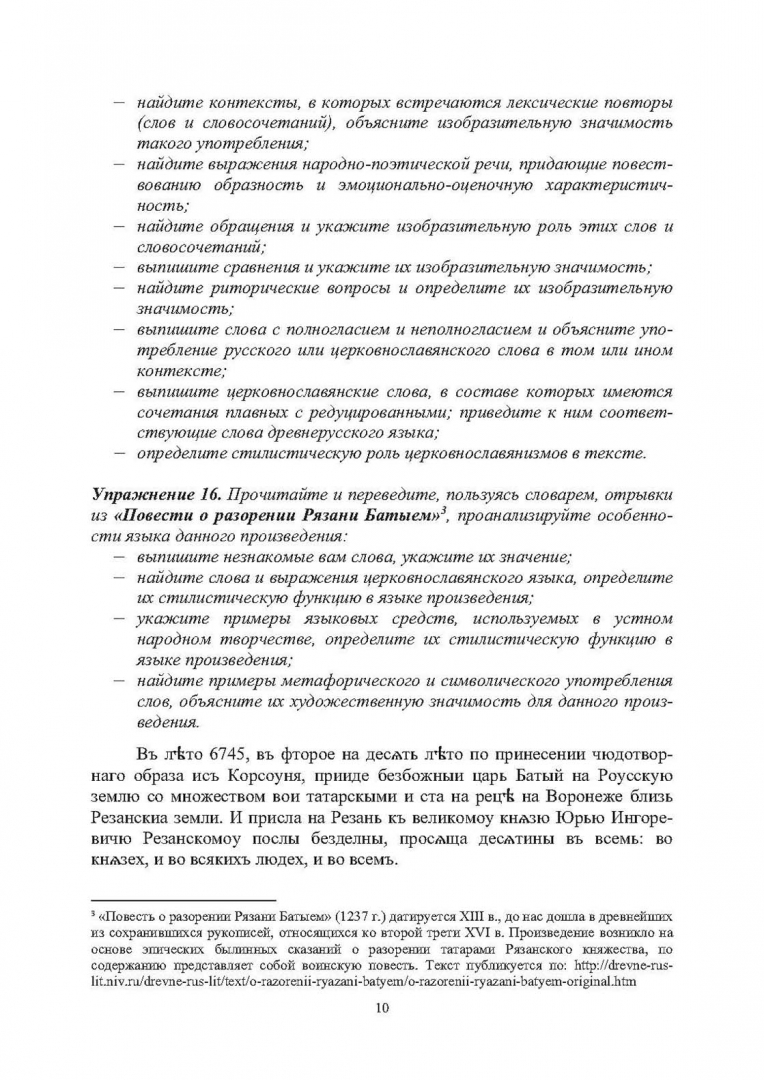 ОписаниеУчебное пособие включает тексты из наиболее значительных памятников письменности русского языка XI-XIX вв., задания для их лингвистического и стилистического анализа, вопросы и упражнения для самостоятельной работы. Материал расположен в соответствии с общепринятой периодизацией истории русского литературного языка, связанной с историей русского народа. К заданиям приложен словарь древнерусских слов, необходимый для чтения, перевода и анализа представленных текстов.Пособие адресовано студентам вузов, обучающимся по направлениям подготовки "Филология", "Педагогическое образование (профили: "Русский язык и литература")".2-е издание, стереотипное.Учебное пособие включает тексты из наиболее значительных памятников письменности русского языка XI-XIX вв., задания для их лингвистического и стилистического анализа, вопросы и упражнения для самостоятельной работы. Материал расположен в соответствии с общепринятой периодизацией истории русского литературного языка, связанной с историей русского народа. К заданиям приложен словарь древнерусских слов, необходимый для чтения, перевода и анализа представленных текстов.Пособие адресовано студентам вузов, обучающимся по направлениям подготовки "Филология", "Педагогическое образование (профили: "Русский язык и литература")".2-е издание, стереотипное.