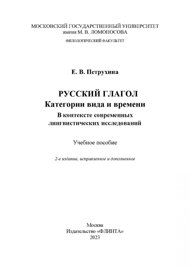 Елена Петрухина: Русский глагол. Категории вида и времени. В контексте современных лингвистических исследований