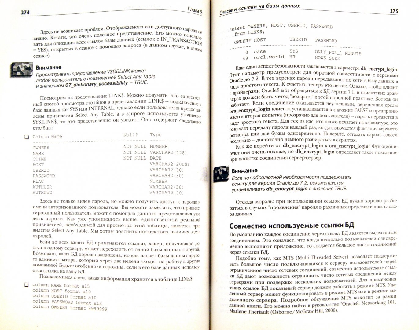 ОписаниеДля предоставления доступа партнерам и заказчикам к критическим системам через Интернет необходимо совершенствование традиционных корпоративных систем безопасности и решение новых сложных задач.Книга знакомит читателей с проверенными методами и стратегиями безопасности среды Oracle - от операционной системы до сетевой БД. Вы найдете здесь пошаговые рекомендации по разработке надежного плана безопасности и конкретные примеры реализации безопасности с помощью встроенных инструментальных средств Oracle. Кроме того - советы по защите от хакеров, аудиту и диагностике всей системы.Для предоставления доступа партнерам и заказчикам к критическим системам через Интернет необходимо совершенствование традиционных корпоративных систем безопасности и решение новых сложных задач.Книга знакомит читателей с проверенными методами и стратегиями безопасности среды Oracle - от операционной системы до сетевой БД. Вы найдете здесь пошаговые рекомендации по разработке надежного плана безопасности и конкретные примеры реализации безопасности с помощью встроенных инструментальных средств Oracle. Кроме того - советы по защите от хакеров, аудиту и диагностике всей системы.