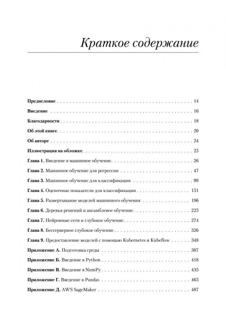 ОписаниеИзучите ключевые концепции машинного обучения‚ работая над реальными проектами! Машинное обучение - то, что поможет вам в анализе поведения клиентов, прогнозировании тенденций движения цен, оценке рисков и многом другом. Чтобы освоить машинное обучение, вам нужны отличные примеры, четкие объяснения и много практики. В книге все это есть! Автор описывает реалистичные, практичные сценарии машинного обучения, а также предельно понятно раскрывает ключевые концепции. Вы разберете интересные проекты, такие как сервис прогнозирования цен на автомобили с использованием линейной регрессии и сервис прогнозирования оттока клиентов. Вы выйдете за рамки алгоритмов и изучите важные техники, например развертывание приложений в бессерверных системах и запуск моделей с помощью Kubernetes и Kubeflow. Пришло время закатать рукава и прокачать свои навыки в области машинного обучения!Изучите ключевые концепции машинного обучения‚ работая над реальными проектами! Машинное обучение - то, что поможет вам в анализе поведения клиентов, прогнозировании тенденций движения цен, оценке рисков и многом другом. Чтобы освоить машинное обучение, вам нужны отличные примеры, четкие объяснения и много практики. В книге все это есть! Автор описывает реалистичные, практичные сценарии машинного обучения, а также предельно понятно раскрывает ключевые концепции. Вы разберете интересные проекты, такие как сервис прогнозирования цен на автомобили с использованием линейной регрессии и сервис прогнозирования оттока клиентов. Вы выйдете за рамки алгоритмов и изучите важные техники, например развертывание приложений в бессерверных системах и запуск моделей с помощью Kubernetes и Kubeflow. Пришло время закатать рукава и прокачать свои навыки в области машинного обучения!