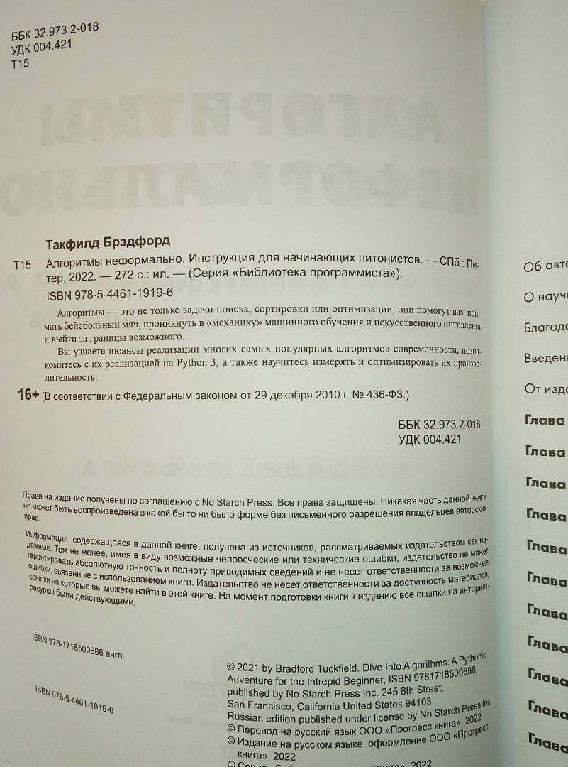 ---Такфилд Брэдфорд: Алгоритмы неформально. Инструкция для начинающих питонистовЭЗОТЕРИКА. ПАРАПСИХОЛОГИЯ. ТАЙНЫ.БИОГРАФИИ и МЕМУАРЫИСТОРИЯ и ПОЛИТИКАФЭНТЕЗИ и ФАНТАСТИКАМЕДИЦИНА и ПСИХОЛОГИЯ ЭКОНОМИКА. БИЗНЕС. МАРКЕТИНГПУТЕШЕСТВИЕ и ДОСУГКНИГИ НА ДРУГИХ ЯЗЫКАХКНИГИ ДЛЯ ДЕТЕЙУЧЕБНАЯ, МЕТОДИЧЕСКАЯ ЛИТЕРАТУРА и СЛОВАРИТЕХНИКА и НАУКАХУДОЖЕСТВЕННАЯ ЛИТЕРАТУРАРЕЛИГИЯ и ФИЛОСОФИЯПЕРИОДИЧЕСКИЕ ИЗДАНИЯМЕДИЦИНА и ПСИХОЛОГИЯНАШ ИЗРАИЛЬ