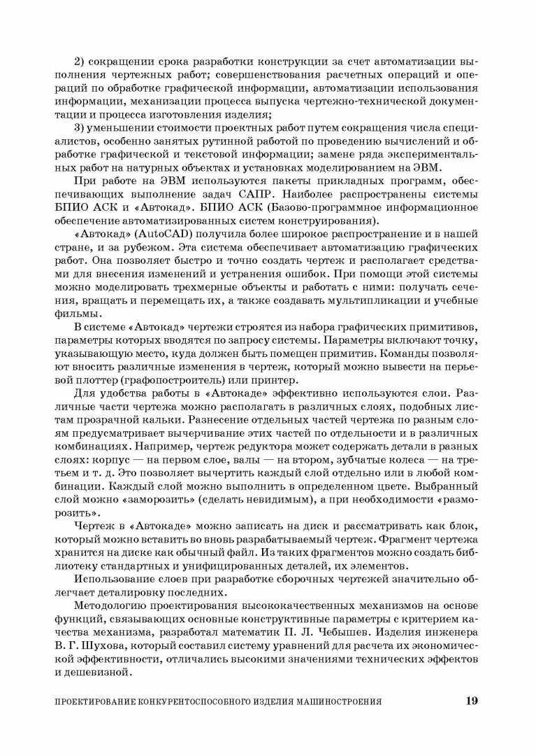 ОписаниеИзложена методология современного проектирования, базирующаяся на инновациях и маркетинговых исследованиях обеспечения конкурентоспособности механизмов и машин. Рассматривается процесс проектирования от разработки бизнес-плана до верификации проекта. Проектирование проводится в соответствии с выбранной целевой функцией изделия, математическим выражением которой является критерий эффективности. Предложен критерий «вероятный эффект — затраты», который используется на всех этапах проектирования для оптимизации конструкции, а затем для учебной оценки курсового (дипломного) проекта. Приведены расчеты двухступенчатых редукторов на персональном компьютере. Используется большой объем справочной информации о характеристиках и областях применения сплавов металлов, пластмасс и композитов, жидких, пластичных и твердых смазочных материалов и т. п.Учебное пособие предназначено для студентов колледжей, обучающихся по машиностроительным специальностям.Изложена методология современного проектирования, базирующаяся на инновациях и маркетинговых исследованиях обеспечения конкурентоспособности механизмов и машин. Рассматривается процесс проектирования от разработки бизнес-плана до верификации проекта. Проектирование проводится в соответствии с выбранной целевой функцией изделия, математическим выражением которой является критерий эффективности. Предложен критерий «вероятный эффект — затраты», который используется на всех этапах проектирования для оптимизации конструкции, а затем для учебной оценки курсового (дипломного) проекта. Приведены расчеты двухступенчатых редукторов на персональном компьютере. Используется большой объем справочной информации о характеристиках и областях применения сплавов металлов, пластмасс и композитов, жидких, пластичных и твердых смазочных материалов и т. п.Учебное пособие предназначено для студентов колледжей, обучающихся по машиностроительным специальностям.
