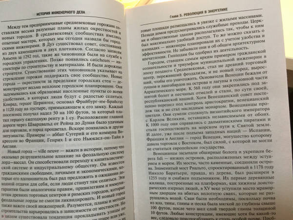 ОписаниеНастоящая книга представляет собой интереснейший обзор развития инженерного искусства в истории западной цивилизации от истоков до двадцатого века. Авторы делают акцент на достижения, которые, по их мнению, являются наиболее важными и оказали наибольшее влияние на развитие человеческой цивилизации, приводя великолепные примеры шедевров творческой инженерной мысли. Это висячие сады Вавилона; строительство египетских пирамид и храмов; хитроумные механизмы Архимеда; сложнейшие конструкции трубопроводов и мостов; тоннелей, проложенных в горах и прорытых под водой; каналов; пароходов; локомотивов - словом, все то, что требует обширных технических знаний, опыта и смелости. Авторы объясняют назначение изобретений, дают подробные описания составных частей и как они взаимодействуют, сообщают основные размеры, дают представление о технологии строительства или сборки. Завершается обзор очерком о влиянии инженерии на общество, в котором утверждается, что технология должна содействовать повышению этических и эстетических ценностей.Книга богато иллюстрирована и написана простым доступным языком, не отягощенным большим количеством технических терминов и деталей.СвернутьНастоящая книга представляет собой интереснейший обзор развития инженерного искусства в истории западной цивилизации от истоков до двадцатого века. Авторы делают акцент на достижения, которые, по их мнению, являются наиболее важными и оказали наибольшее влияние на развитие человеческой цивилизации, приводя великолепные примеры шедевров творческой инженерной мысли. Это висячие сады Вавилона; строительство египетских пирамид и храмов; хитроумные механизмы Архимеда; сложнейшие конструкции трубопроводов и мостов; тоннелей, проложенных в горах и прорытых под водой; каналов; пароходов; локомотивов - словом, все то, что требует обширных технических знаний, опыта и смелости. Авторы объясняют назначение изобретений, дают подробные описания составных частей и как они взаимодействуют, сообщают основные размеры, дают представление о технологии строительства или сборки. Завершается обзор очерком о влиянии инженерии на общество, в котором утверждается, что технология должна содействовать повышению этических и эстетических ценностей.Книга богато иллюстрирована и написана простым доступным языком, не отягощенным большим количеством технических терминов и деталей.СвернутьСвернуть