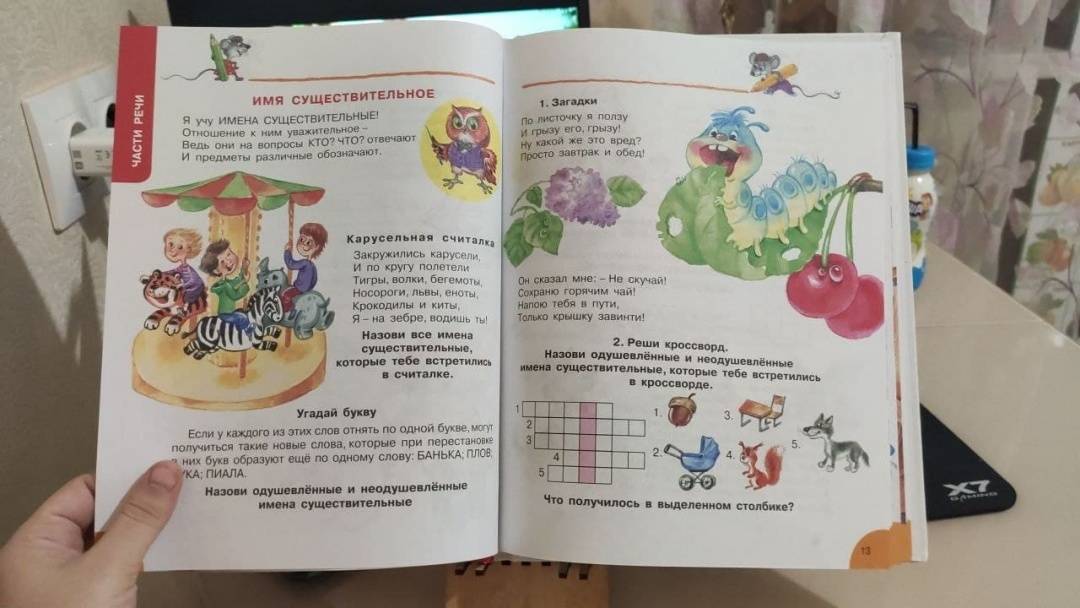 ОписаниеЧто такое существительное, глагол, прилагательное; как запомнить словарные слова; как правильно ставить ударения и многое другое ребёнок узнает из книги "Занимательные упражнения с буквами и словами". Все эти сведения он получит в весёлой игровой форме, разгадает множество загадок, ребусов, чайнвордов, запомнит некоторые трудные правила и выучит правильные формы слов.Для младшего школьного возраста.Что такое существительное, глагол, прилагательное; как запомнить словарные слова; как правильно ставить ударения и многое другое ребёнок узнает из книги "Занимательные упражнения с буквами и словами". Все эти сведения он получит в весёлой игровой форме, разгадает множество загадок, ребусов, чайнвордов, запомнит некоторые трудные правила и выучит правильные формы слов.Для младшего школьного возраста.