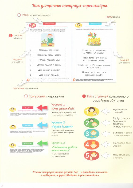 ОписаниеИрина Мальцева - известный педагог, детский психолог, методист, автор более 100 книг и пособий, разработчик образовательных программ интеллектуального развития детей. "Все по полочкам!" - ее новейшее пособие по становлению читательских навыков детей в семье на основе технологии комфортного обучения. Технология комфортного семейного обучения предусматривает "мягкий вход" ребенка в процесс освоения чтения. Если вам трудно сделать осознанный выбор и вы теряетесь от россыпи пособий, программа Ирины Мальцевой - это именно то, что вам нужно. Она поможет организовать системное обучение ребенка, станет надежным путеводителем с понятными целями и выстроенными задачами; обеспечит индивидуальный подход - ребёнок выполняет задания, исходя из своих возможностей и предпочтений. В каждой тетрадке 3 уровня сложности, 5 ступеней усвоения. Заниматься по ней удобно, комфортно и по силам любой семье. Главное - следовать курсу, который проложила для вас Ирина Мальцева. Важно, что все материалы в тетрадках используются в каждодневной работе педагогов-практиков.2-е издание, стереотипное.СвернутьИрина Мальцева - известный педагог, детский психолог, методист, автор более 100 книг и пособий, разработчик образовательных программ интеллектуального развития детей. "Все по полочкам!" - ее новейшее пособие по становлению читательских навыков детей в семье на основе технологии комфортного обучения. Технология комфортного семейного обучения предусматривает "мягкий вход" ребенка в процесс освоения чтения. Если вам трудно сделать осознанный выбор и вы теряетесь от россыпи пособий, программа Ирины Мальцевой - это именно то, что вам нужно. Она поможет организовать системное обучение ребенка, станет надежным путеводителем с понятными целями и выстроенными задачами; обеспечит индивидуальный подход - ребёнок выполняет задания, исходя из своих возможностей и предпочтений. В каждой тетрадке 3 уровня сложности, 5 ступеней усвоения. Заниматься по ней удобно, комфортно и по силам любой семье. Главное - следовать курсу, который проложила для вас Ирина Мальцева. Важно, что все материалы в тетрадках используются в каждодневной работе педагогов-практиков.2-е издание, стереотипное.СвернутьСвернуть