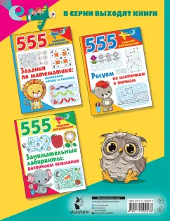 Объем, стр. 48 ISBN 978-5-17-150007-8 Автор Серебрякова О. Р., Земчонок С. О., Двинина Людмила Владимировна Художник Серебрякова О. Р., Земчонок С. О., Двинина Людмила Владимировна Серия 555 заданий для дошколят Язык Русский Год издания книги 2022 Тип обложки Мягкий переплет Иллюстрации Черно-белые Вес, г 142г Размеры 255х197х3 мм - Отзывы