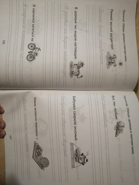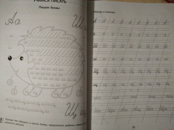 ОписаниеВ прописях ребёнку предлагается сначала обводить по серому контуру буквы, слова и даже предложения, а потом уже писать самостоятельно. Для многих детей именно такой способ освоения письма становится более комфортным.В прописях ребёнку предлагается сначала обводить по серому контуру буквы, слова и даже предложения, а потом уже писать самостоятельно. Для многих детей именно такой способ освоения письма становится более комфортным.