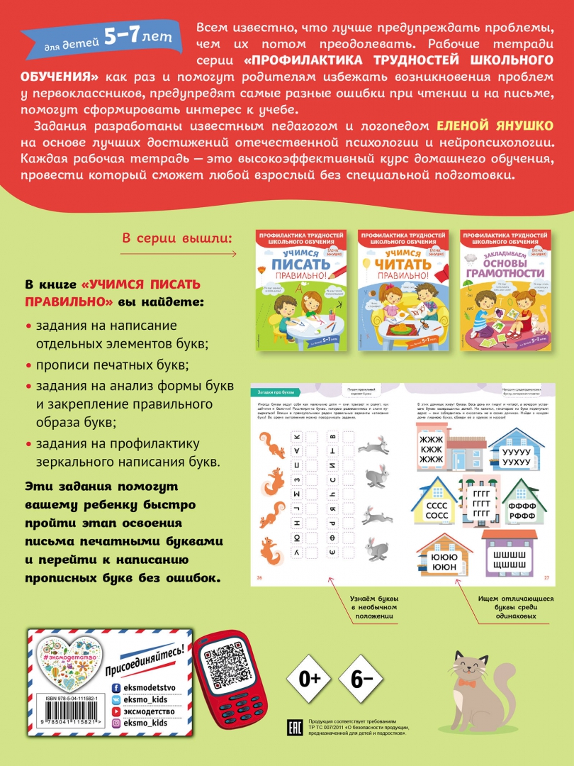 Объем, стр. 72 ISBN 978-5-04-111582-1 Автор Янушко Елена Альбиновна, Шашкина Е. И., Хорева Яна, Бунина Н. В. Художник Шашкина Е. И., Хорева Яна Игоревна, Бунина Н. В. Серия Профилактика трудностей школьного обучения Год издания книги 2020 Тип обложки Мягкий переплет Иллюстрации Цветные Вес, г 251г Размеры 290х220х6 мм - Отзывы