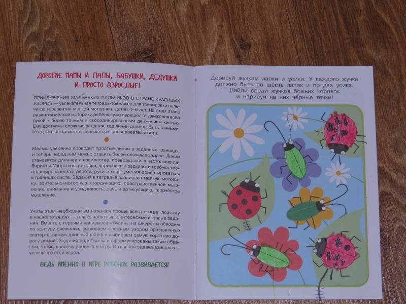 ОписаниеПрописи - это скучно, а играть - весело и волшебно! Это любой ребёнок подтвердит!Поэтому в наших тетрадях для тренировки пальчиков и развития мелкой моторики - только понятные и интересные игровые задания."Приключения маленьких пальчиков в стране красивых узоров" - увлекательная тетрадь-тренажёр для детей 4-6 лет. На этом этапе развития мелкой моторики ребёнок уже перешёл от движения всей рукой к более точным и скоординированным движениям кистью. Теперь ему доступны сложные задания, где линии должны быть точными, а отдельные элементы сливаются в последовательности.Задания подобраны и сформулированы таким образом, чтобы вовлечь ребёнка в игру. Ведь именно в игре ребёнок развивается!Игровые задания данного альбома стимулируют активное развитие мелкой моторики, зрительно-моторной координации, пространственного мышления, внимания и усидчивости, речи и артикуляции, творческого мышления.Для детей дошкольного возраста.2-е издание, стереотипное.Прописи - это скучно, а играть - весело и волшебно! Это любой ребёнок подтвердит!Поэтому в наших тетрадях для тренировки пальчиков и развития мелкой моторики - только понятные и интересные игровые задания."Приключения маленьких пальчиков в стране красивых узоров" - увлекательная тетрадь-тренажёр для детей 4-6 лет. На этом этапе развития мелкой моторики ребёнок уже перешёл от движения всей рукой к более точным и скоординированным движениям кистью. Теперь ему доступны сложные задания, где линии должны быть точными, а отдельные элементы сливаются в последовательности.Задания подобраны и сформулированы таким образом, чтобы вовлечь ребёнка в игру. Ведь именно в игре ребёнок развивается!Игровые задания данного альбома стимулируют активное развитие мелкой моторики, зрительно-моторной координации, пространственного мышления, внимания и усидчивости, речи и артикуляции, творческого мышления.Для детей дошкольного возраста.2-е издание, стереотипное.