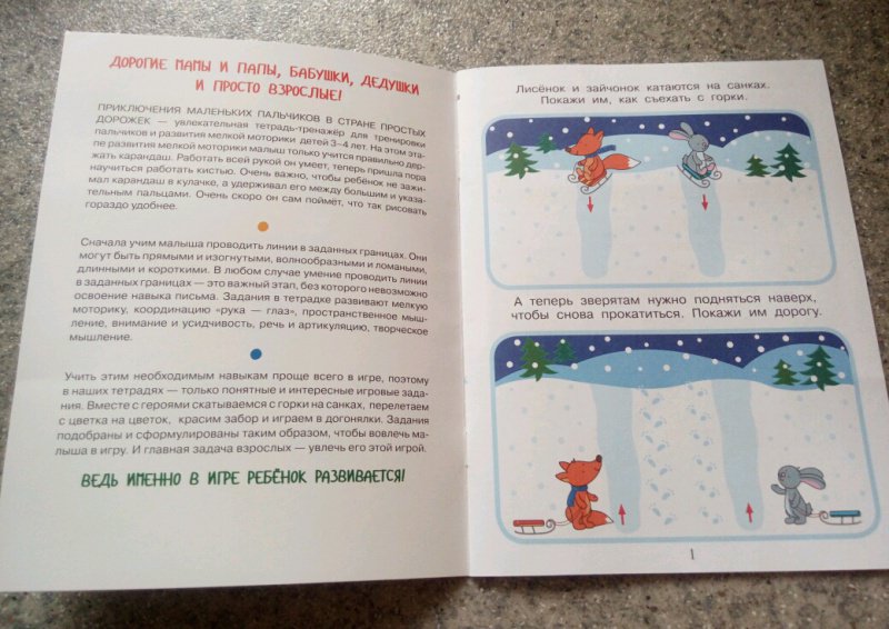 ОписаниеПрописи - это скучно, а играть - весело и волшебно! Это любой ребёнок подтвердит! Поэтому в наших тетрадях для тренировки пальчиков и развития мелкой моторики - только понятные и интересные игровые задания. "Приключения маленьких пальчиков в стране простых дорожек" - увлекательная тетрадь-тренажёр для детей 3-4 лет. На этом этапе развития мелкой моторики малыш учится правильно держать карандаш, проводить простые линии в заданных границах, учится работать не только всей рукой, но и кистью. Прямые и изогнутые, волнообразные и ломаные линии - это те элементы, которые лежат в основе произвольного рисования и письма в будущем. Задания подобраны и сформулированы таким образом, чтобы вовлечь ребёнка в игру. Ведь именно в игре ребёнок развивается! Игровые задания данного альбома стимулируют активное развитие мелкой моторики, зрительно-моторной координации, пространственного мышления, внимания и усидчивости, речи и артикуляции, творческого мышления.2-е издание, стереотипное.Прописи - это скучно, а играть - весело и волшебно! Это любой ребёнок подтвердит! Поэтому в наших тетрадях для тренировки пальчиков и развития мелкой моторики - только понятные и интересные игровые задания. "Приключения маленьких пальчиков в стране простых дорожек" - увлекательная тетрадь-тренажёр для детей 3-4 лет. На этом этапе развития мелкой моторики малыш учится правильно держать карандаш, проводить простые линии в заданных границах, учится работать не только всей рукой, но и кистью. Прямые и изогнутые, волнообразные и ломаные линии - это те элементы, которые лежат в основе произвольного рисования и письма в будущем. Задания подобраны и сформулированы таким образом, чтобы вовлечь ребёнка в игру. Ведь именно в игре ребёнок развивается! Игровые задания данного альбома стимулируют активное развитие мелкой моторики, зрительно-моторной координации, пространственного мышления, внимания и усидчивости, речи и артикуляции, творческого мышления.2-е издание, стереотипное.