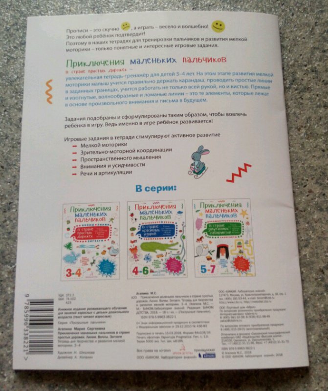 --Мария Агапина: Приключения маленьких пальчиков в стране простых дорожек. Линии. Волны. Зигзаги. Тетрадь. 3-4 годаКниги для учителейСловари и разговорникиДошкольное обучениеКниги для родителейПособия для детей с ограниченными возможностямиДополнительное образование для детейПедагогикаПодготовка в вузДемонстрационные материалыИностранные языки: грамматика и учебникиКниги для школыВспомогательные материалы для студентов