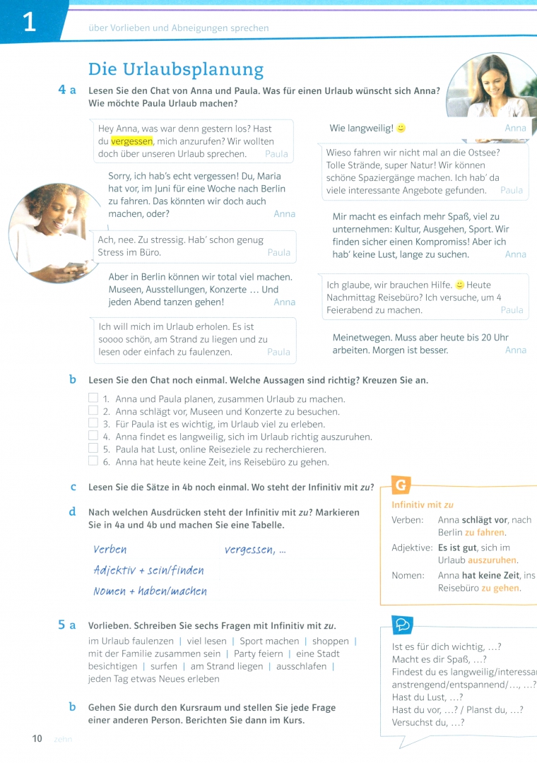 ОписаниеУчебник немецкого языка для взрослых "Netzwerk neu. B1. Kursbuch mit Audios und Videos" позволяет изучать немецкий язык как иностранный на уровне B1 и подготовиться ко всем экзаменам, соответствующим данному уровню. В учебнике - 12 глав с четкой организацией и, благодаря удобной для учеников планировке страниц и специальным значкам по навигации, простой ориентацией внутри каждой главы. Разнообразные типы упражнений развивают навыки сотрудничества и ориентированы на успех и компетентность в вопросах языка. Ученикам также предлагаются задания на выбор, в зависимости от их типа обучения, навыков и интересов. Таким образом, учителю легко индивидуализировать процесс обучения. В курсе применяется принцип плюрилингвизма, позволяющий сравнивать языки, включая родной язык и другие иностранные языки, и облегчающий процесс понимания грамматических структур и способствующий более эффективному усвоению словарного запаса. Учебник также обеспечивает систематическую подготовку к экзаменам по немецкому языку. В конце учебника есть справочник по грамматике, список с неправильными глаголами и список с ключевыми словами и выражениями в алфавитном порядке. Доступ к аудио и видео материалам можно получить из бесплатного приложения для телефона - Klett Augmented.СвернутьУчебник немецкого языка для взрослых "Netzwerk neu. B1. Kursbuch mit Audios und Videos" позволяет изучать немецкий язык как иностранный на уровне B1 и подготовиться ко всем экзаменам, соответствующим данному уровню. В учебнике - 12 глав с четкой организацией и, благодаря удобной для учеников планировке страниц и специальным значкам по навигации, простой ориентацией внутри каждой главы. Разнообразные типы упражнений развивают навыки сотрудничества и ориентированы на успех и компетентность в вопросах языка. Ученикам также предлагаются задания на выбор, в зависимости от их типа обучения, навыков и интересов. Таким образом, учителю легко индивидуализировать процесс обучения. В курсе применяется принцип плюрилингвизма, позволяющий сравнивать языки, включая родной язык и другие иностранные языки, и облегчающий процесс понимания грамматических структур и способствующий более эффективному усвоению словарного запаса. Учебник также обеспечивает систематическую подготовку к экзаменам по немецкому языку. В конце учебника есть справочник по грамматике, список с неправильными глаголами и список с ключевыми словами и выражениями в алфавитном порядке. Доступ к аудио и видео материалам можно получить из бесплатного приложения для телефона - Klett Augmented.СвернутьСвернуть