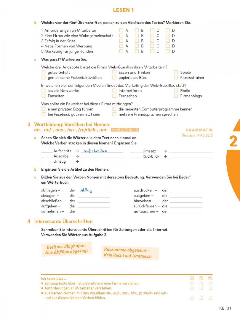 Описание"Sicher! aktuell B2.1. Kurs- und Arbeitsbuch, Lektion 1–6 + CDmp3 zum Arbeitsbuch" - комплект из первых 6 разделов учебника и рабочей тетради по немецкому языку для взрослых с упором на изменившиеся форматы экзаменов нового Goethe-Zertifikat B2 (с января 2019 года) и экзаменов Telc B2, Telc B1-B2 Beruf и ÖSD ZB2. Многочисленные новые задания охватывают изменившиеся форматы этих четырех экзаменов. В учебнике тренируются четыре основных языковых навыка, необходимых для понимания и использования немецкого языка, изучаются интересные темы из области повседневной жизни, работы, учебы и образования. Рабочая тетрадь содержит углубленные упражнения на отработку лексики, грамматики и других языковых навыков, повторение важной лексики из предыдущих уровней в начале каждого урока, упрощение сложных грамматических тем с помощью заданий на повторение, тест для проверки собственных знаний в конце каждого раздела. В комплект включен диск с аудиозаписями. В приложении содержится подробный обзор всех форматов экзаменов, которые отрабатываются в книге.Свернуть"Sicher! aktuell B2.1. Kurs- und Arbeitsbuch, Lektion 1–6 + CDmp3 zum Arbeitsbuch" - комплект из первых 6 разделов учебника и рабочей тетради по немецкому языку для взрослых с упором на изменившиеся форматы экзаменов нового Goethe-Zertifikat B2 (с января 2019 года) и экзаменов Telc B2, Telc B1-B2 Beruf и ÖSD ZB2. Многочисленные новые задания охватывают изменившиеся форматы этих четырех экзаменов. В учебнике тренируются четыре основных языковых навыка, необходимых для понимания и использования немецкого языка, изучаются интересные темы из области повседневной жизни, работы, учебы и образования. Рабочая тетрадь содержит углубленные упражнения на отработку лексики, грамматики и других языковых навыков, повторение важной лексики из предыдущих уровней в начале каждого урока, упрощение сложных грамматических тем с помощью заданий на повторение, тест для проверки собственных знаний в конце каждого раздела. В комплект включен диск с аудиозаписями. В приложении содержится подробный обзор всех форматов экзаменов, которые отрабатываются в книге.СвернутьСвернуть