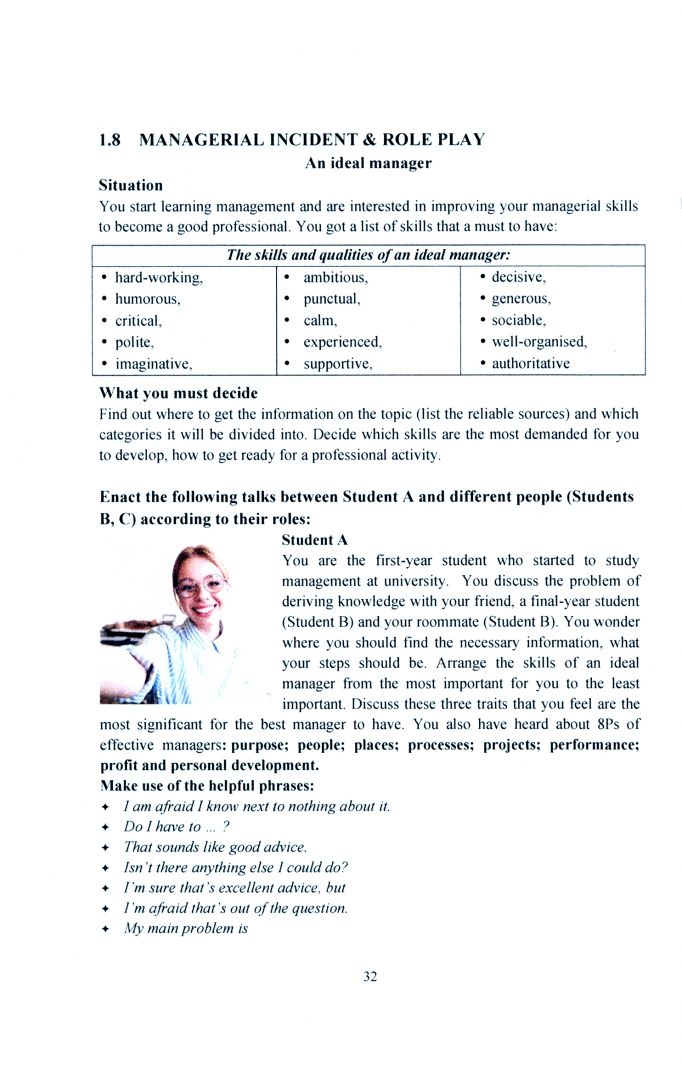 ОписаниеУчебник предназначен для студентов, обучающихся по направлению подготовки 38.02.02 "Менеджмент" (программа подготовки бакалавров) и изучающих дисциплину "Иностранный язык", которая относится к обязательной части общегуманитарного цикла программы подготовки бакалавров. Тематика учебника связана с ключевыми понятиями в области менеджмента, его функциями, системой методов управления и процессами принятия решений, а также проблемами социальной ответственности. Все разделы снабжены грамматическими упражнениями, ролевыми играми и предусматривают использование мультимедийных технологий. Учебник может быть также полезен для слушателей, обучающихся по программам дополнительного профессионального образования, и тех, кто совершенствует иноязычные профессиональные навыки самостоятельноУчебник предназначен для студентов, обучающихся по направлению подготовки 38.02.02 "Менеджмент" (программа подготовки бакалавров) и изучающих дисциплину "Иностранный язык", которая относится к обязательной части общегуманитарного цикла программы подготовки бакалавров. Тематика учебника связана с ключевыми понятиями в области менеджмента, его функциями, системой методов управления и процессами принятия решений, а также проблемами социальной ответственности. Все разделы снабжены грамматическими упражнениями, ролевыми играми и предусматривают использование мультимедийных технологий. Учебник может быть также полезен для слушателей, обучающихся по программам дополнительного профессионального образования, и тех, кто совершенствует иноязычные профессиональные навыки самостоятельно