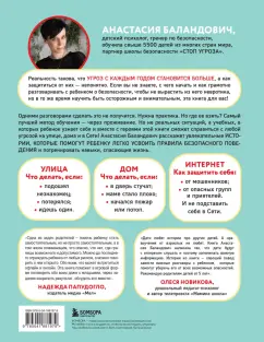 ОписаниеПостоянно обсуждаете с ребенком правила безопасности, но все равно не уверены, что он все понял? А он еще и отмахивается и закатывает глаза со словами: "Мам, я все знаю, сколько можно? Отстань!" Тревожитесь, отпуская его одного, и пытаетесь контролировать каждый его шаг в Сети, из-за чего постоянно ссоритесь? Гиперконтроль и запреты не защитят вашего ребенка, а лишь увеличат пропасть непонимания между вами и повысят вашу и без того высокую тревожность. Вы не можете всегда и везде быть рядом с ним, поэтому лучший способ его защитить - научить распознавать опасность (всегда проще предотвратить, чем разбираться с последствиями) и быстро действовать, чтобы спастись, если ситуация все же произошла! В этой книге тренер по детской безопасности Анастасия Баландович объяснит, как ребенку не попасть в беду на улице, дома и в интернете. Автор на простых примерах-историях разберет основы безопасного поведения. А обсуждение вами этих историй с ребенком поможет сблизиться с ним и развить у него критическое мышление. Автор Анастасия Баландович - эксперт по детской безопасности, детский психолог, педагог дополнительного образования. Обучила свыше 5500 детей из многих стран мира: России, Испании, Великобритании, Германии, Кипра, Белоруссии, ОАЭ, Израиля, Канады, США, Китая, Нидерландов, Казахстана. Провела свыше 1500 онлайн-тренингов и курсов по безопасности детей. Неоднократно выступала в качестве эксперта в федеральных и региональных СМИ, среди которых: "Известия", "Российская газета", РИА Новости, Вести FM, "Первый канал", "Россия 1", "Аргументы и факты", "Невские новости", ТСВ.СвернутьПостоянно обсуждаете с ребенком правила безопасности, но все равно не уверены, что он все понял? А он еще и отмахивается и закатывает глаза со словами: "Мам, я все знаю, сколько можно? Отстань!" Тревожитесь, отпуская его одного, и пытаетесь контролировать каждый его шаг в Сети, из-за чего постоянно ссоритесь? Гиперконтроль и запреты не защитят вашего ребенка, а лишь увеличат пропасть непонимания между вами и повысят вашу и без того высокую тревожность. Вы не можете всегда и везде быть рядом с ним, поэтому лучший способ его защитить - научить распознавать опасность (всегда проще предотвратить, чем разбираться с последствиями) и быстро действовать, чтобы спастись, если ситуация все же произошла! В этой книге тренер по детской безопасности Анастасия Баландович объяснит, как ребенку не попасть в беду на улице, дома и в интернете. Автор на простых примерах-историях разберет основы безопасного поведения. А обсуждение вами этих историй с ребенком поможет сблизиться с ним и развить у него критическое мышление. Автор Анастасия Баландович - эксперт по детской безопасности, детский психолог, педагог дополнительного образования. Обучила свыше 5500 детей из многих стран мира: России, Испании, Великобритании, Германии, Кипра, Белоруссии, ОАЭ, Израиля, Канады, США, Китая, Нидерландов, Казахстана. Провела свыше 1500 онлайн-тренингов и курсов по безопасности детей. Неоднократно выступала в качестве эксперта в федеральных и региональных СМИ, среди которых: "Известия", "Российская газета", РИА Новости, Вести FM, "Первый канал", "Россия 1", "Аргументы и факты", "Невские новости", ТСВ.СвернутьСвернуть