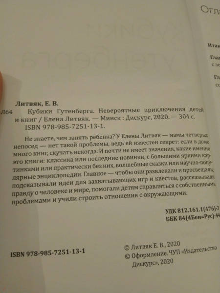 ОписаниеНе знаете, чем занять ребенка? У Елены Литвяк - мамы четверых непосед - нет такой проблемы, ведь ей известен секрет: если в доме много книг, скучать некогда. И почти не имеет значения, какие именно это книги: классика или последние новинки, с большими яркими картинками или практически без них, волшебные сказки или научно-популярные энциклопедии. Главное - чтобы они развлекали и просвещали, подсказывали идеи для захватывающих игр и квестов, рассказывали правду о человеке и мире, помогали детям справляться с собственными проблемами и учили строить отношения с окружающими.Не знаете, чем занять ребенка? У Елены Литвяк - мамы четверых непосед - нет такой проблемы, ведь ей известен секрет: если в доме много книг, скучать некогда. И почти не имеет значения, какие именно это книги: классика или последние новинки, с большими яркими картинками или практически без них, волшебные сказки или научно-популярные энциклопедии. Главное - чтобы они развлекали и просвещали, подсказывали идеи для захватывающих игр и квестов, рассказывали правду о человеке и мире, помогали детям справляться с собственными проблемами и учили строить отношения с окружающими.