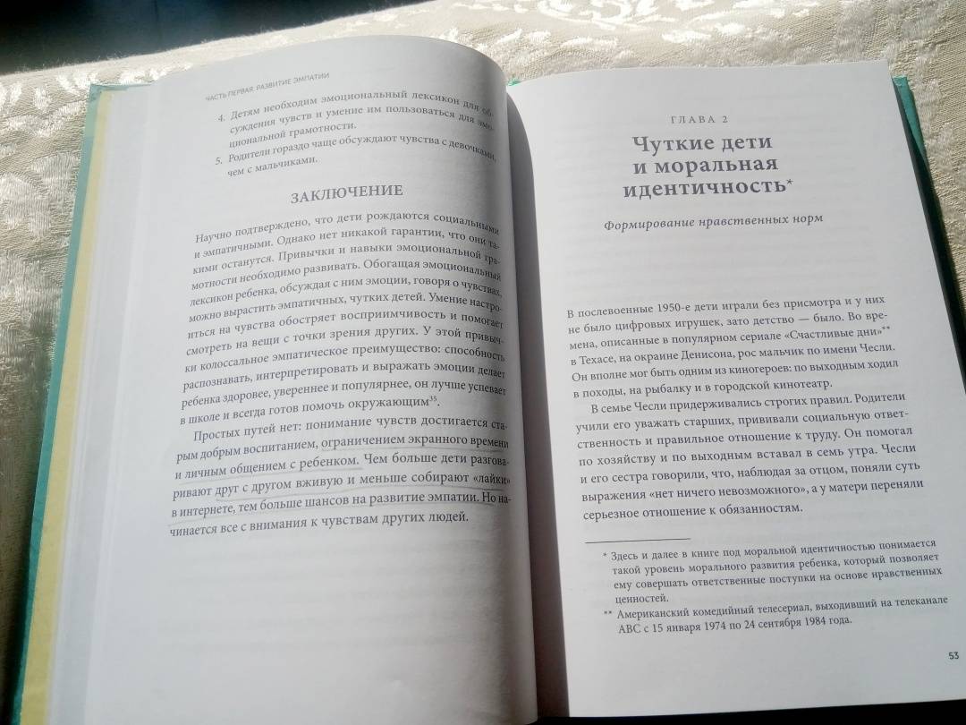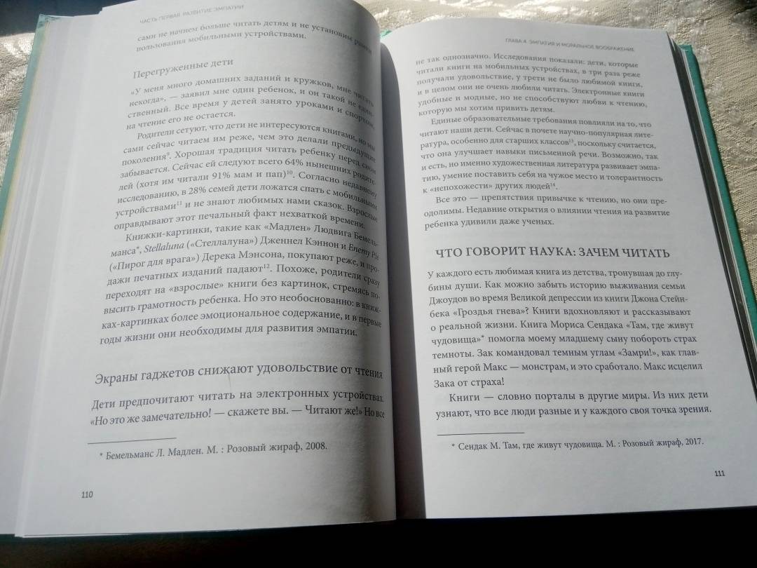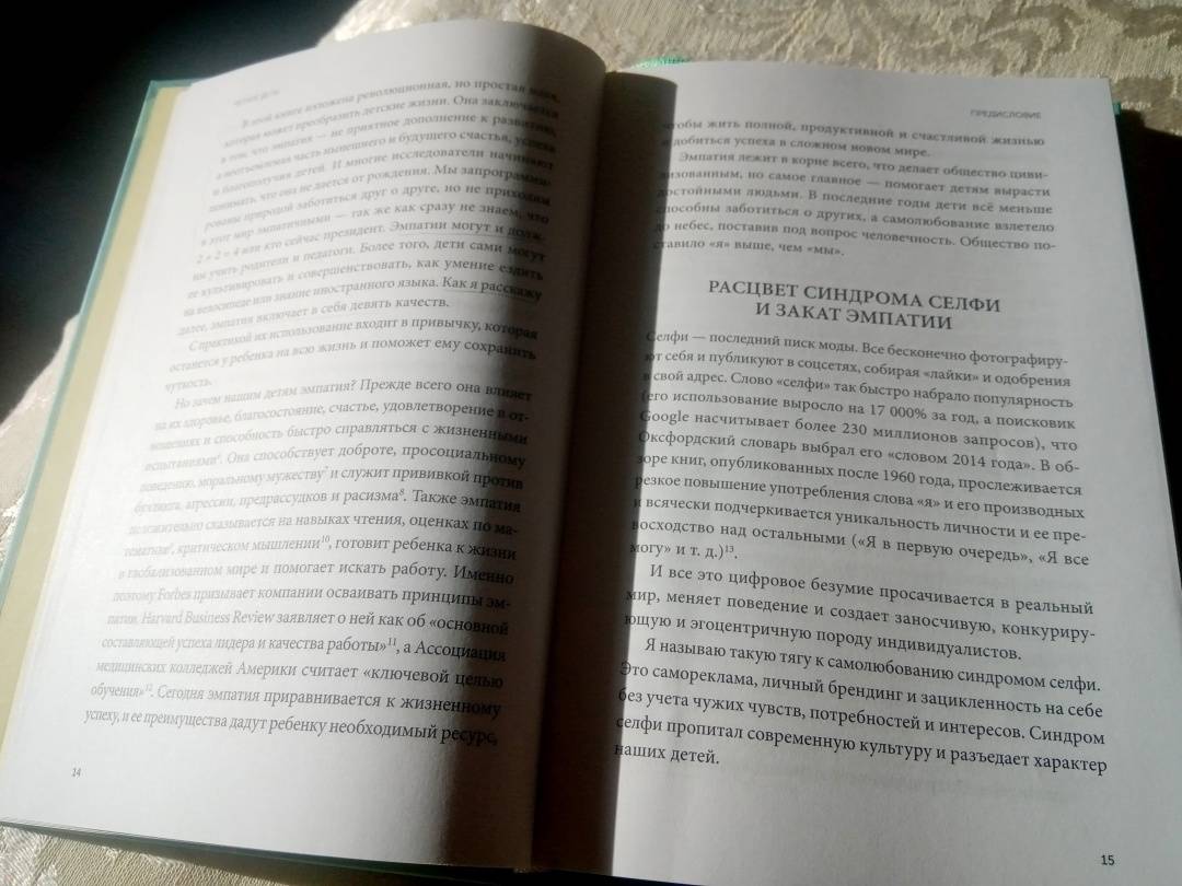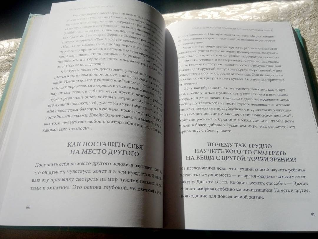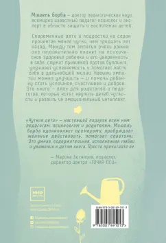 ОписаниеЭту книгу американская писательница Джин Твенж назвала "обязательной для чтения", а американский писатель Джек Кэнфилд той, что "изменит жизнь ваших детей".У современной молодежи наблюдается ощутимый разрыв эмпатии. Заметно выросла жестокость по отношению к сверстникам. В то же время согласно последним исследованиям эмпатия и эмоциональный интеллект лежат в основе достижения счастья в современном мире. Недостаток эмпатии вредит успеваемости детей и приводит к буллингу в учебных заведениях. Кроме того, он ведет к меньшей устойчивости детской психики. Когда дети вырастают, отсутствие эмпатии мешает их способности сотрудничать, внедрять инновации и решать проблемы.Хорошая новость для родителей в том, что эмпатии можно научить. В этой книге доктор Мишель Борба предлагает лучшие стратегии с доказанной эффективностью как родителям, так и педагогам. Это 9-ступенчатая программа развития эмпатии с рекомендациями, как направлять детей от рождения до взрослой жизни. Это план для родителей, которые хотят, чтобы дети перестали думать только о себе и начали говорить не только "я", но и "мы".От автора"Что нужно детям, чтобы стать счастливыми и успешными?" - спрашивали меня сотни родителей, и мой ответ всех удивлял: "Эмпатия". Сочувствие - это далеко не сюсюканье, как считают некоторые. Оно играет неожиданно важную роль в счастье и успехе.Эмпатия - не приятное дополнение к развитию, а неотъемлемая часть нынешнего и будущего счастья, успеха и благополучия детей. Она не дается от рождения. Эмпатии могут и должны учить родители и педагоги. Более того, дети сами могут ее культивировать и совершенствовать, как умение ездить на велосипеде или знание иностранного языка.Но зачем нашим детям эмпатия? Прежде всего она влияет на их здоровье, благосостояние, счастье, удовлетворение в отношениях и способность быстро оправляться от невзгод. Она способствует доброте, просоциальному поведению, моральному мужеству и служит прививкой против буллинга, агрессии, предрассудков и расизма. Также эмпатия положительно сказывается на навыках чтения, оценках по математике, критическом мышлении, готовит ребенка к жизнь в глобализованном мире и помогает искать работу.Поэтому Forbes призывает компании осваивать принципы эмпатии, Harvard Business Review заявляет о ней как об "основной составляющей успеха лидера и качества работы", а Ассоциация медицинских колледжей считает "ключевой целью обучения".Фишки книгиЭффективные упражнения и рекомендации для развития эмпатии у детей разного возраста.Пояснения на конкретных жизненных примерах, как ребенок может использовать эмпатию в жизни: сейчас и в будущем.Эмпатия как способ преодоления буллинга в детской среде.Для кого эта книгаЭта книга предназначена не только для родителей и педагогов, но и для тех, кто только планирует стать родителями.Для медиков, воспитателей, бабушек и дедушек и всех, кто имеет привилегию стать образцом для подражания в жизни ребенка.СвернутьЭту книгу американская писательница Джин Твенж назвала "обязательной для чтения", а американский писатель Джек Кэнфилд той, что "изменит жизнь ваших детей".У современной молодежи наблюдается ощутимый разрыв эмпатии. Заметно выросла жестокость по отношению к сверстникам. В то же время согласно последним исследованиям эмпатия и эмоциональный интеллект лежат 