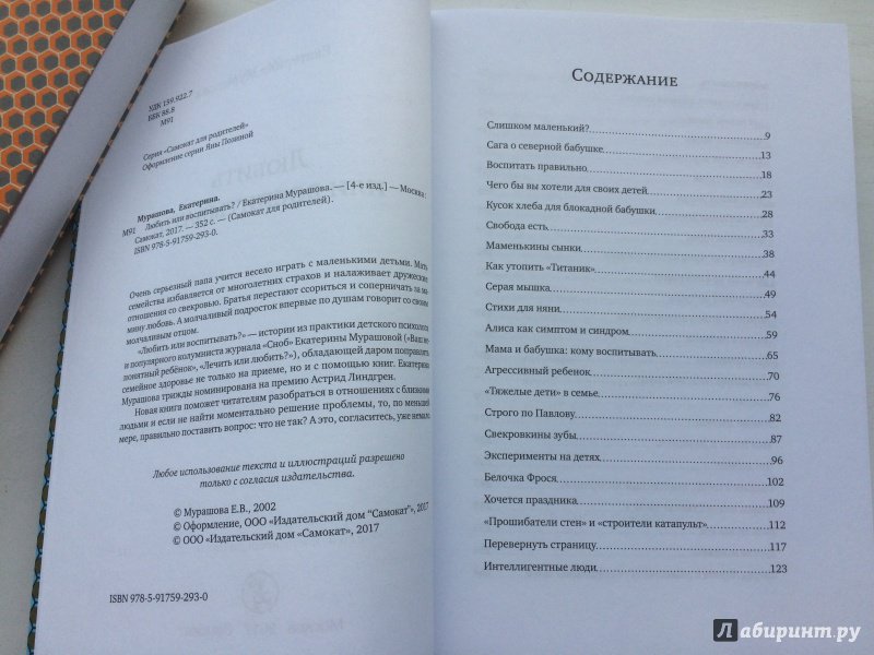 ОписаниеОчень серьезный папа учится весело играть с маленькими детьми. Мать семейства избавляется от многолетних страхов и налаживает дружеские отношения со свекровью. Братья перестают ссориться и соперничать за мамину любовь. А молчаливый подросток впервые по душам говорит со своим молчаливым отцом."Любить или воспитывать?" - истории из практики детского психолога и популярного колумниста журнала "Сноб" Екатерины Мурашовой ("Ваш непонятный ребёнок", "Лечить или любить?"), обладающей даром поправлять семейное здоровье не только на приеме, но и с помощью книг. Екатерина Мурашова трижды номинирована на премию Астрид Линдгрен.Новая книга поможет читателям разобраться в отношениях с близкими людьми и если не найти моментально решение проблемы, то, по меньшей мере, правильно поставить вопрос: что не так? А это, согласитесь, уже немало.4-е издание.Очень серьезный папа учится весело играть с маленькими детьми. Мать семейства избавляется от многолетних страхов и налаживает дружеские отношения со свекровью. Братья перестают ссориться и соперничать за мамину любовь. А молчаливый подросток впервые по душам говорит со своим молчаливым отцом."Любить или воспитывать?" - истории из практики детского психолога и популярного колумниста журнала "Сноб" Екатерины Мурашовой ("Ваш непонятный ребёнок", "Лечить или любить?"), обладающей даром поправлять семейное здоровье не только на приеме, но и с помощью книг. Екатерина Мурашова трижды номинирована на премию Астрид Линдгрен.Новая книга поможет читателям разобраться в отношениях с близкими людьми и если не найти моментально решение проблемы, то, по меньшей мере, правильно поставить вопрос: что не так? А это, согласитесь, уже немало.4-е издание.