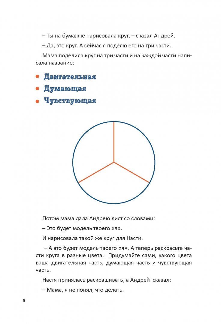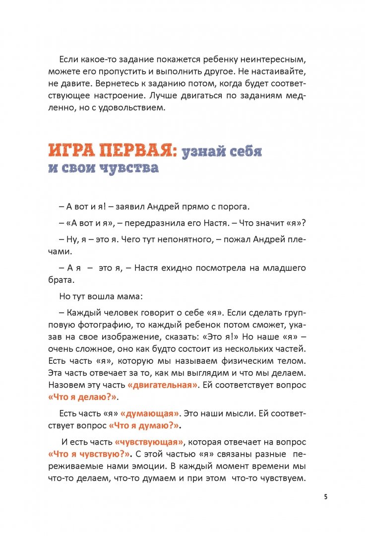 ОписаниеЕсли в книге "Секреты спокойствия "ленивой мамы" речь шла о том, как маме обрести гармонию с собой, то в новой книге педагога, психолога и автора серии бестселлеров "Ленивая мама" Анны Быковой речь идет об эмоциях детей. Задачки, шахматы, английский - каждый родитель знает, для чего он учит этому ребенка. А вот разбираться в эмоциях, тонко чувствовать, что происходит в твоей душе или душе другого человека, владеть собой - можно ли этому научить детей, да и зачем? Анна Быкова объясняет родителям, почему ребенка обязательно нужно познакомить с миром эмоций и как это сделать легко и весело. Здесь вы найдете примеры диалогов с детьми, увлекательные упражнения, игры, с помощью которых можно подружить ребенка с эмоциями.Если в книге "Секреты спокойствия "ленивой мамы" речь шла о том, как маме обрести гармонию с собой, то в новой книге педагога, психолога и автора серии бестселлеров "Ленивая мама" Анны Быковой речь идет об эмоциях детей. Задачки, шахматы, английский - каждый родитель знает, для чего он учит этому ребенка. А вот разбираться в эмоциях, тонко чувствовать, что происходит в твоей душе или душе другого человека, владеть собой - можно ли этому научить детей, да и зачем? Анна Быкова объясняет родителям, почему ребенка обязательно нужно познакомить с миром эмоций и как это сделать легко и весело. Здесь вы найдете примеры диалогов с детьми, увлекательные упражнения, игры, с помощью которых можно подружить ребенка с эмоциями.