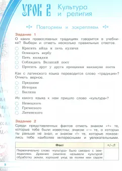 ОписаниеРабочая тетрадь разработана в соответствии с Федеральным государственным образовательным стандартом начального общего образования и Примерной рабочей программой "Основы религиозных культур и светской этики". Содержание тетради отражает особенности тематического планирования курса ОРКСЭ в соответствии с учебником "Основы религиозных культур и светской этики. Основы православной культуры. 4 класс" под научной редакцией О. Ю. Васильевой. Рабочая тетрадь включает репродуктивные, продуктивные, творческие и рефлексивные задания в индивидуальной и групповой формах. Тетрадь поможет четвероклассникам закрепить и углубить знания об основах православной культуры, развить творческое мышление, отработать универсальные учебные действия, сформировать представления о нравственном поведении, о тех правилах и нормах, на которых должны строиться взаимоотношения между людьми. Тетрадь можно использовать как на уроке, так и во время самостоятельных занятий детей.Рабочая тетрадь разработана в соответствии с Федеральным государственным образовательным стандартом начального общего образования и Примерной рабочей программой "Основы религиозных культур и светской этики". Содержание тетради отражает особенности тематического планирования курса ОРКСЭ в соответствии с учебником "Основы религиозных культур и светской этики. Основы православной культуры. 4 класс" под научной редакцией О. Ю. Васильевой. Рабочая тетрадь включает репродуктивные, продуктивные, творческие и рефлексивные задания в индивидуальной и групповой формах. Тетрадь поможет четвероклассникам закрепить и углубить знания об основах православной культуры, развить творческое мышление, отработать универсальные учебные действия, сформировать представления о нравственном поведении, о тех правилах и нормах, на которых должны строиться взаимоотношения между людьми. Тетрадь можно использовать как на уроке, так и во время самостоятельных занятий детей.