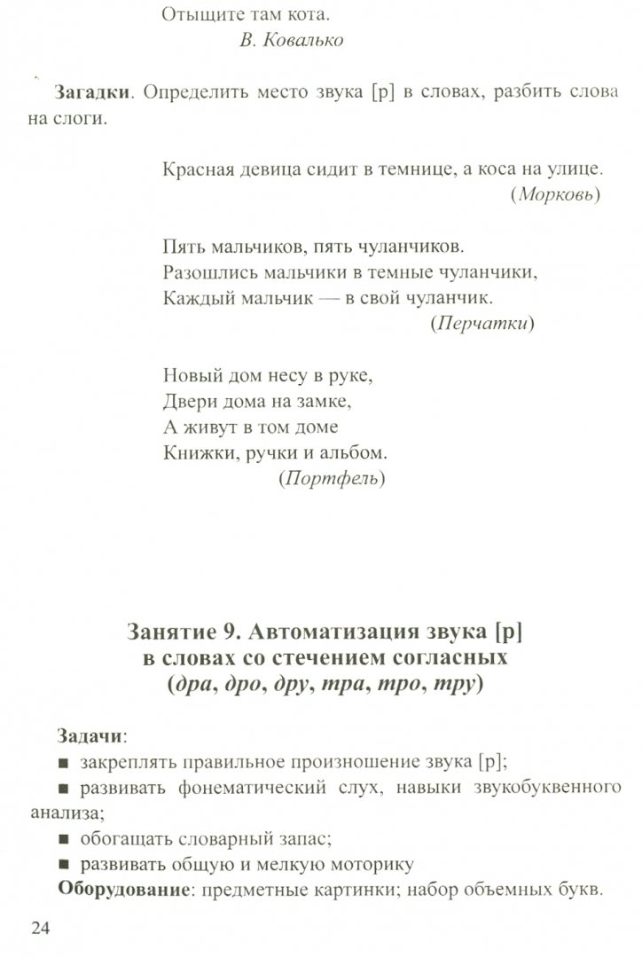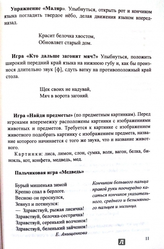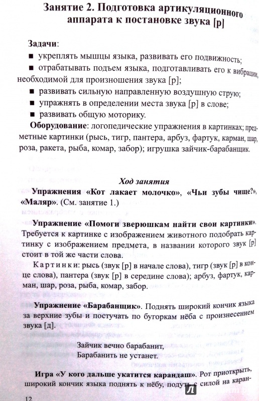 ОписаниеВ пособии представлены краткие конспекты занятий по подготовке артикуляционного аппарата к постановке звука, постановке звука, автоматизации звука в начале, середине и конце слова, автоматизации звука в словах со стечением согласных, дифференциации звуков. Рассмотрены звуки [р], [р'], [л], [л'], [ш]. Конспекты содержат игры, упражнения, задания, физкультминутки и пальчиковую гимнастику, многие из которых основаны на скороговорках и чистоговорках. Все занятия проводятся в игровой, занимательной форме. В приложении представлены занятия с использованием скороговорок.Книга предназначена для учителей-логопедов, воспитателей ДОУ, студентов педагогических образовательных заведений, а также родителей детей дошкольного возраста.В пособии представлены краткие конспекты занятий по подготовке артикуляционного аппарата к постановке звука, постановке звука, автоматизации звука в начале, середине и конце слова, автоматизации звука в словах со стечением согласных, дифференциации звуков. Рассмотрены звуки [р], [р'], [л], [л'], [ш]. Конспекты содержат игры, упражнения, задания, физкультминутки и пальчиковую гимнастику, многие из которых основаны на скороговорках и чистоговорках. Все занятия проводятся в игровой, занимательной форме. В приложении представлены занятия с использованием скороговорок.Книга предназначена для учителей-логопедов, воспитателей ДОУ, студентов педагогических образовательных заведений, а также родителей детей дошкольного возраста.