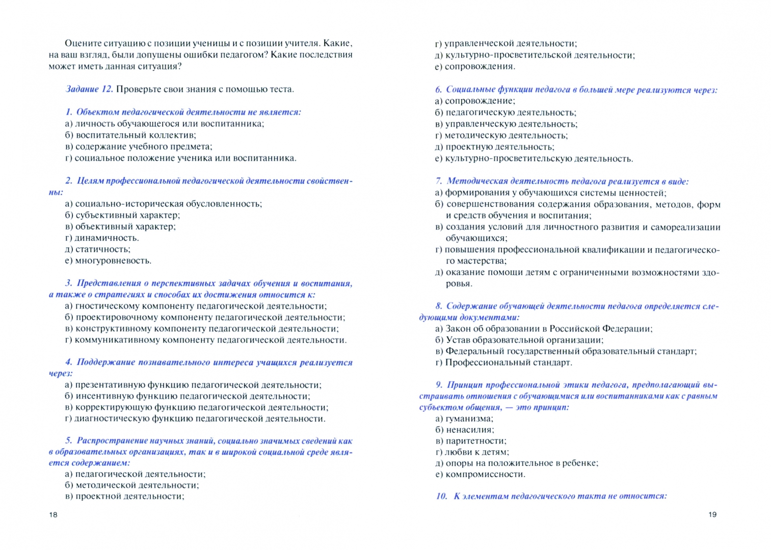 ОписаниеСодержит практические задания репродуктивного, проблемного и творческого характера, направленные на организацию самостоятельной работы студентов и их учебной деятельности в группе. Включает в себя фрагменты нормативных документов, художественных произведений и методические разработки, необходимые для выполнения ряда практических заданий и кейсов, а также методики, позволяющие студентам произвести самооценку уровня сформированности профессионально-значимых личностных характеристик. Даны определения педагогических терминов, знание которых необходимо для выполнения практических заданий, и правильные ответы к отдельным заданиям.Соответствует ФГОС ВО последнего поколения.Для студентов бакалавриата, обучающихся по направлению подготовки "Педагогическое образование".Содержит практические задания репродуктивного, проблемного и творческого характера, направленные на организацию самостоятельной работы студентов и их учебной деятельности в группе. Включает в себя фрагменты нормативных документов, художественных произведений и методические разработки, необходимые для выполнения ряда практических заданий и кейсов, а также методики, позволяющие студентам произвести самооценку уровня сформированности профессионально-значимых личностных характеристик. Даны определения педагогических терминов, знание которых необходимо для выполнения практических заданий, и правильные ответы к отдельным заданиям.Соответствует ФГОС ВО последнего поколения.Для студентов бакалавриата, обучающихся по направлению подготовки "Педагогическое образование".