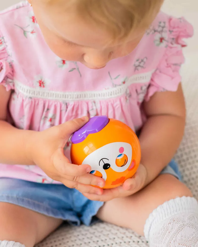 ОписаниеВот так сюрприз! Музыкальный мячик-зверюшка «2 в 1» – милая лисичка. Нажми на него – лисичка спрячет ножки, закроет глазки – и превратится в мячик! Покатай его –мячик будет петь и говорить! Слушай веселые песенки и мелодии («Друзья», «Питомцы», «Это что за чудеса?» и др.), забавные звуки и фразы. Надоело катать мячик? Нажми на него еще раз – мячик-лисичка откроет глазки, встанет на ножки – и превратится обратно в зверюшку. Вот такие чудеса! Игры с таким веселым мячиком развивают у ребенка двигательную активность, музыкальные способности, фантазию и просто поднимают настроение!
