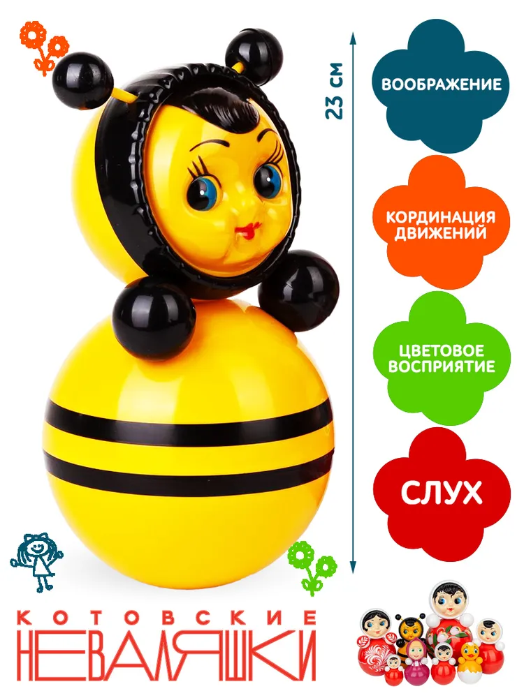 Музыкальная игрушка для малышей: Неваляшка Пчела 22 см