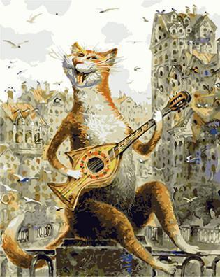 Алмазная мозаика "Кот играет на гитаре-рыбе" , 50х40 см