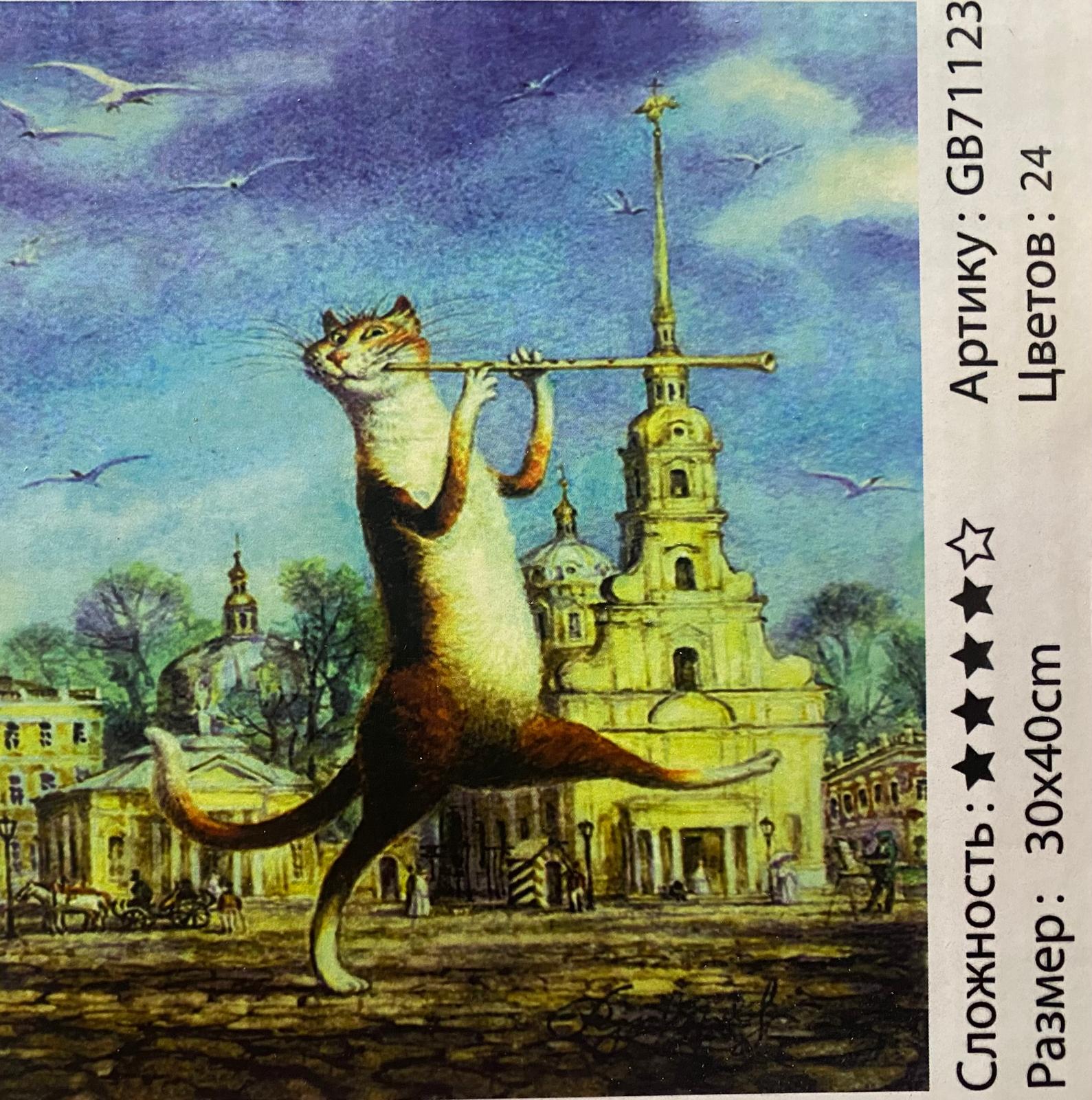 Алмазная мозаика "Кот играет на флейте" , 30х40 см