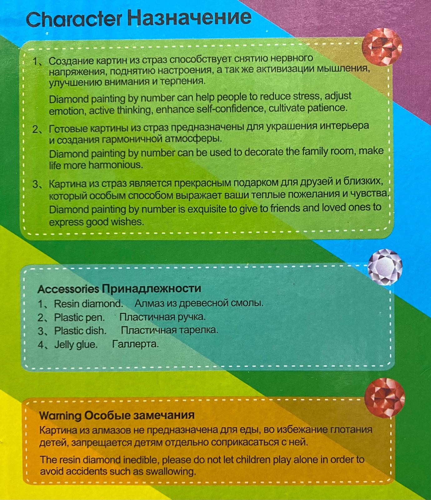 ОписаниеАлмазная живопись или алмазная мозаика - это выкладка акриловыми камешками красочных картин по схеме нанесенной на холст, покрытый клеевым слоем. В отличие от вышивания, Алмазная Вышивка требует меньше сил и времени, а результат при этом получается яркий, насыщенный и сверкающий.