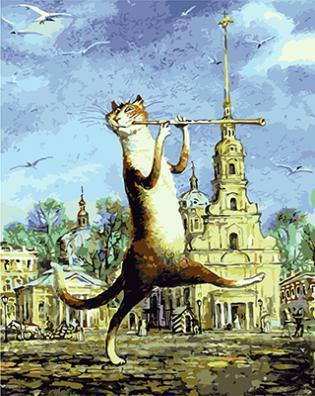Рисование по номерам "Кот играет флейте" , 50х40 см