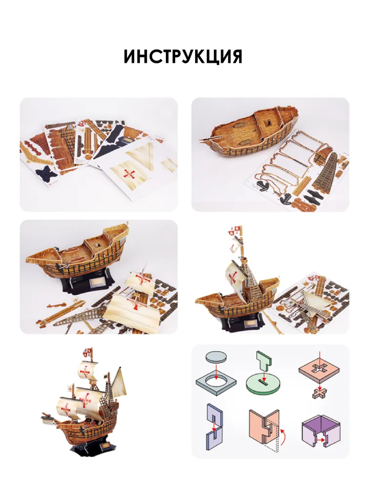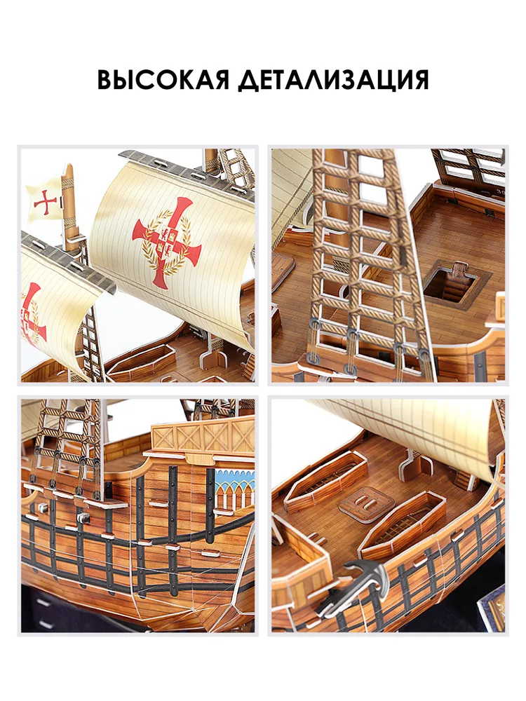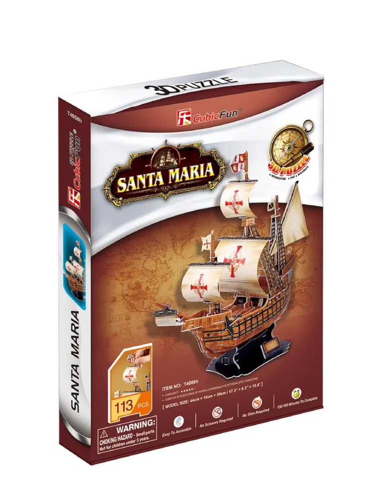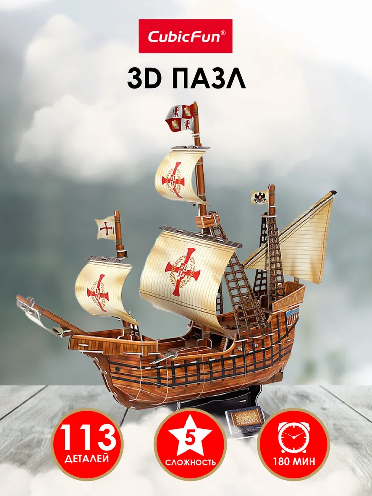 3D пазл корабль Христофора Колумба «Санта-Мария» из серии «Корабли» c уровнем сложности 4 из 4. Набор содержит 113 объёмных деталей, а размер готового макета составляет 44 х 16 х 39 см. Серия «Корабли» - это большой ассортимент знаменитых кораблей различных размеров и уровней сложности. В комплекте 3D пазл с детальной инструкцией по сборке.