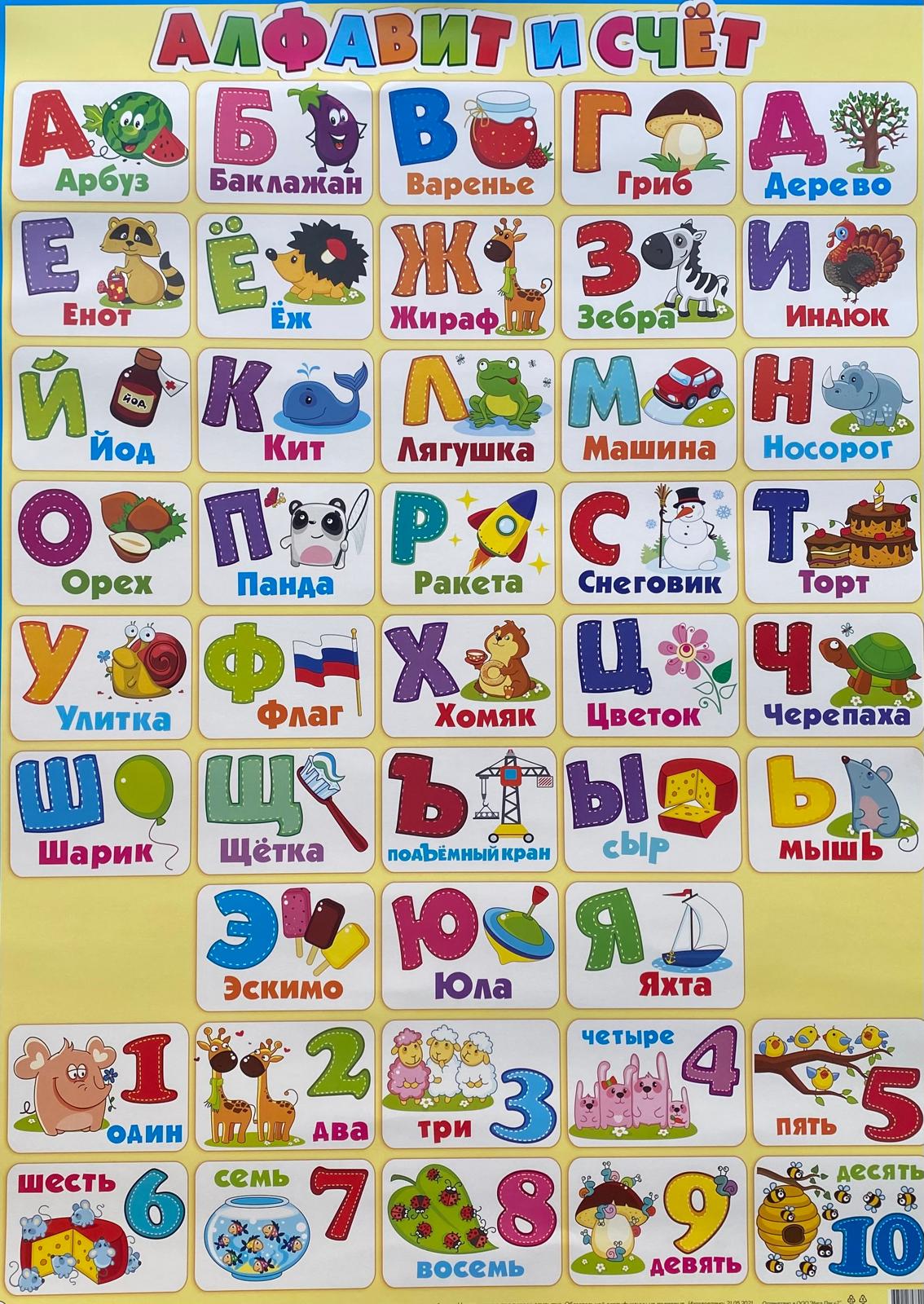 Обучающий плакат на стену по русскому языку Алфавит и счет