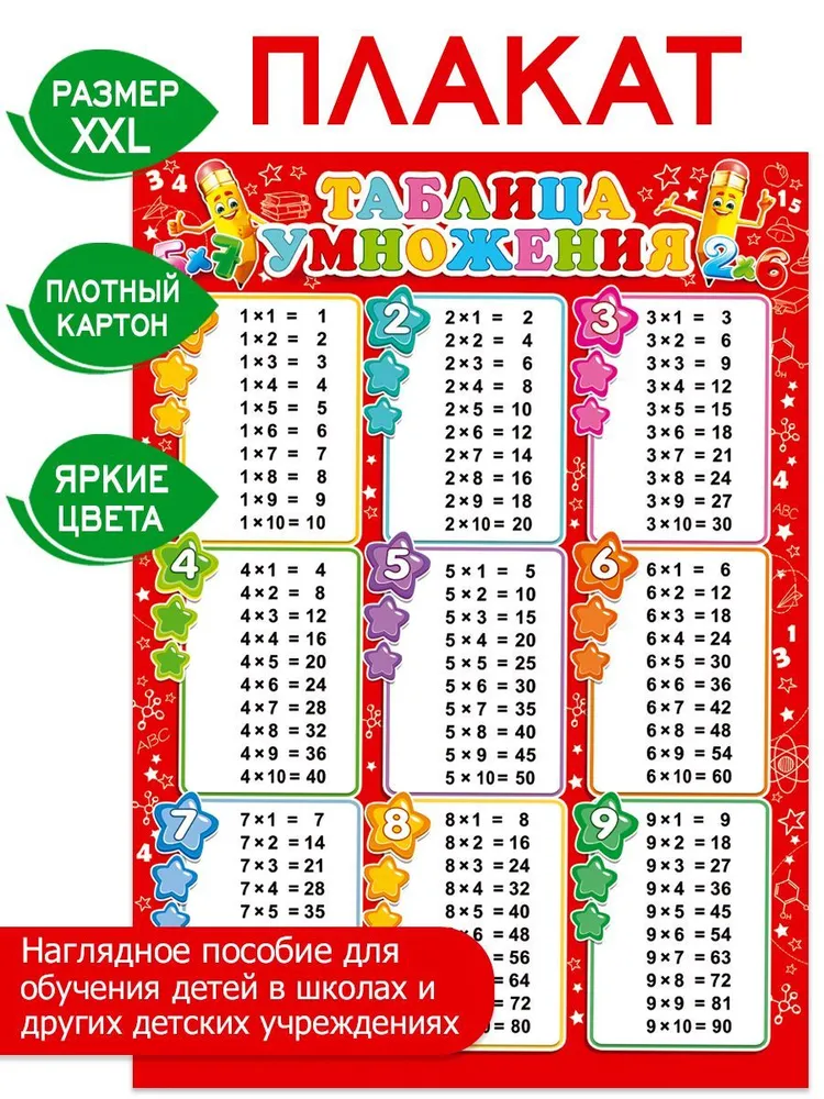 Цвет Желтый, зеленый, синий, красный, белый Тип Обучающий плакат Учебный предмет Математика, Цифры и счет Материал Бумага, Ламинированный картон, Мелованный картон, Картон - Отзывы